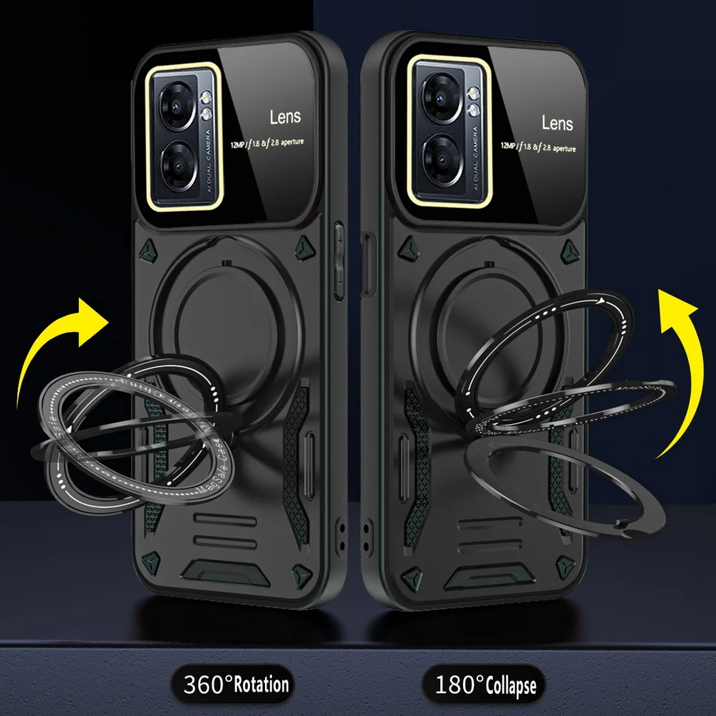 Comprar Magsafe-funda de adsorción magnética para OPPO A17, A57, A77, A77S, Realme, Narzo 50, cámara protectora, anillo giratorio de Metal, soporte para coche