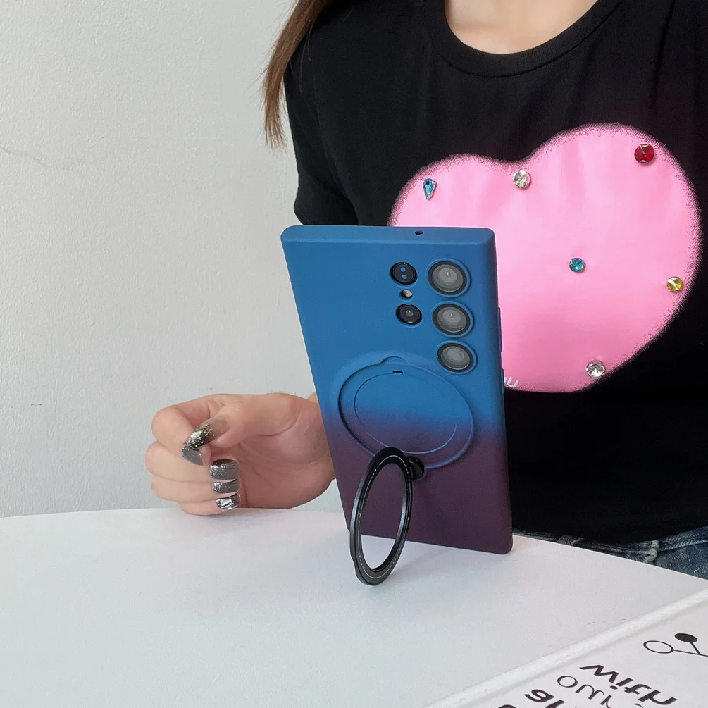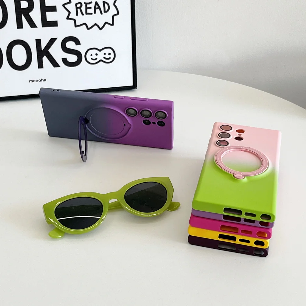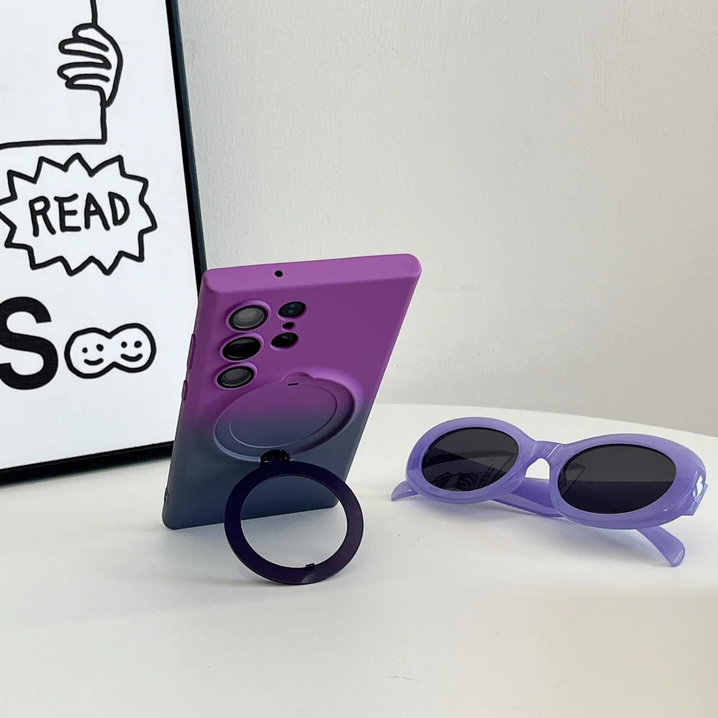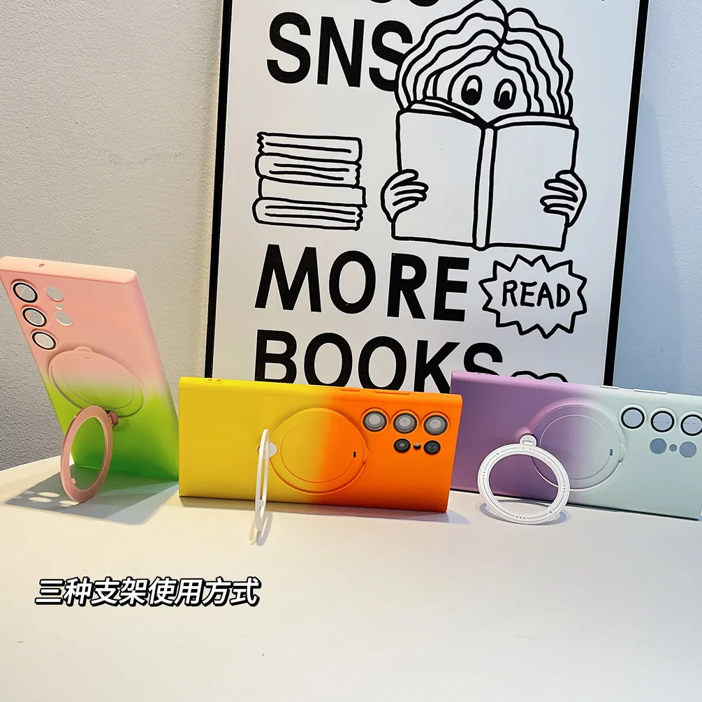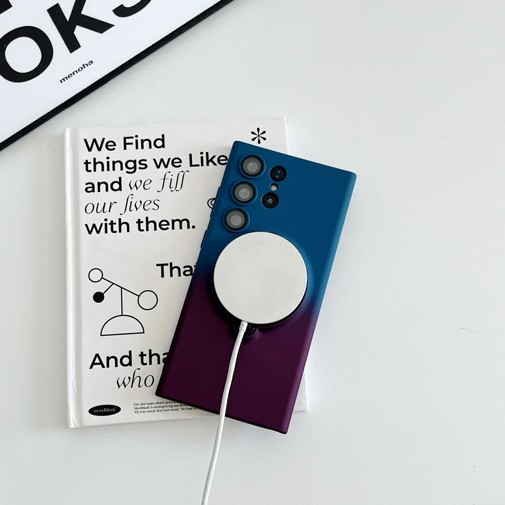 Comprar Magsafe-funda de adsorción magnética para Samsung S23 Ultra Galaxy S23 + S23 Plus, carcasa trasera con anillo de Metal de Color degradado suave