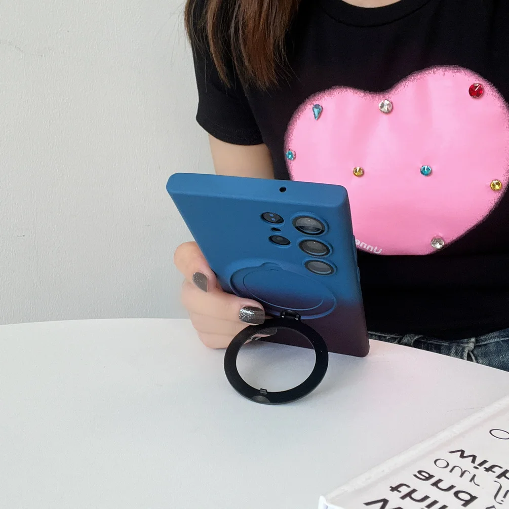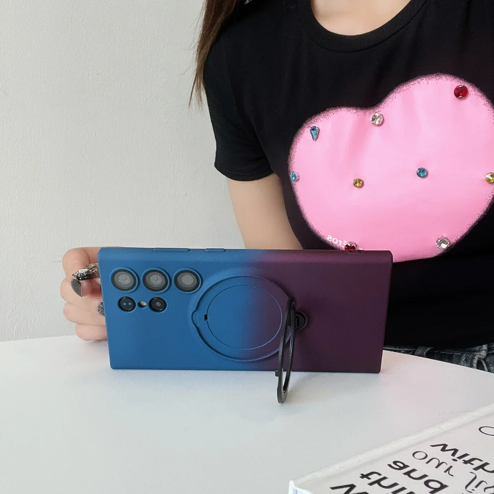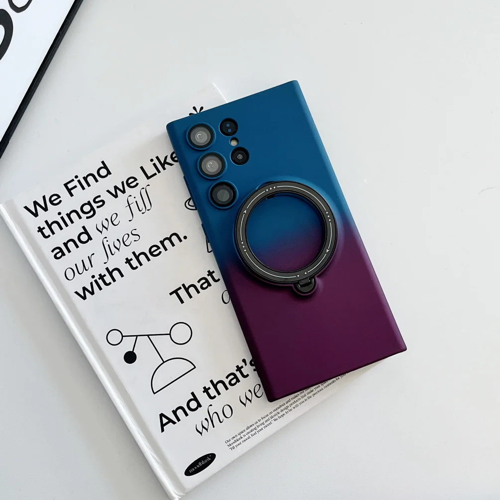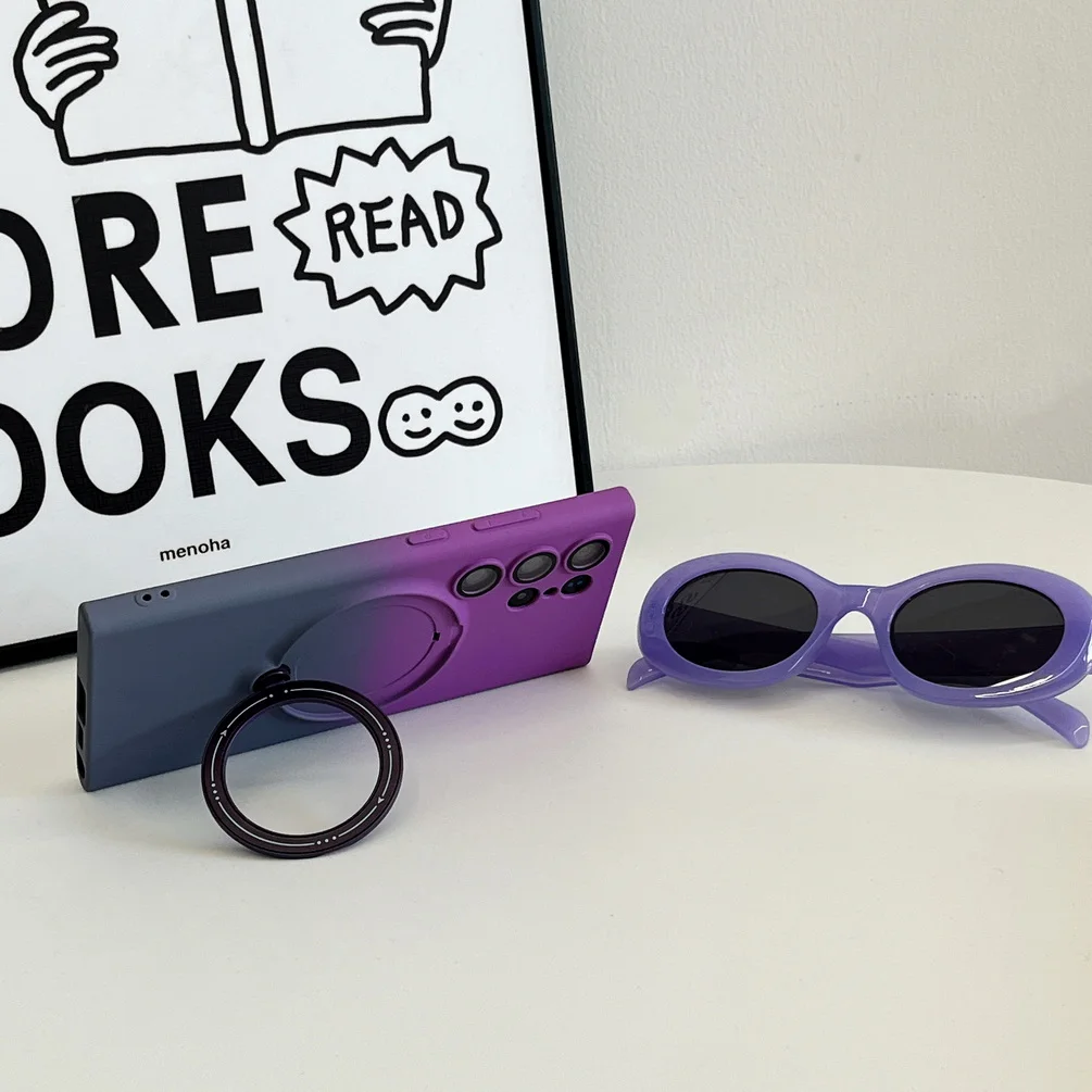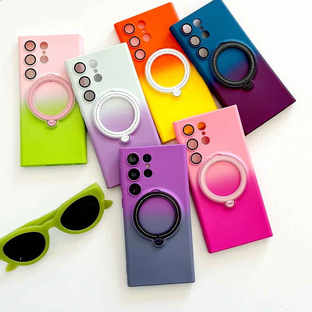 Comprar Magsafe-funda de adsorción magnética para Samsung S23 Ultra Galaxy S23 + S23 Plus, carcasa trasera con anillo de Metal de Color degradado suave