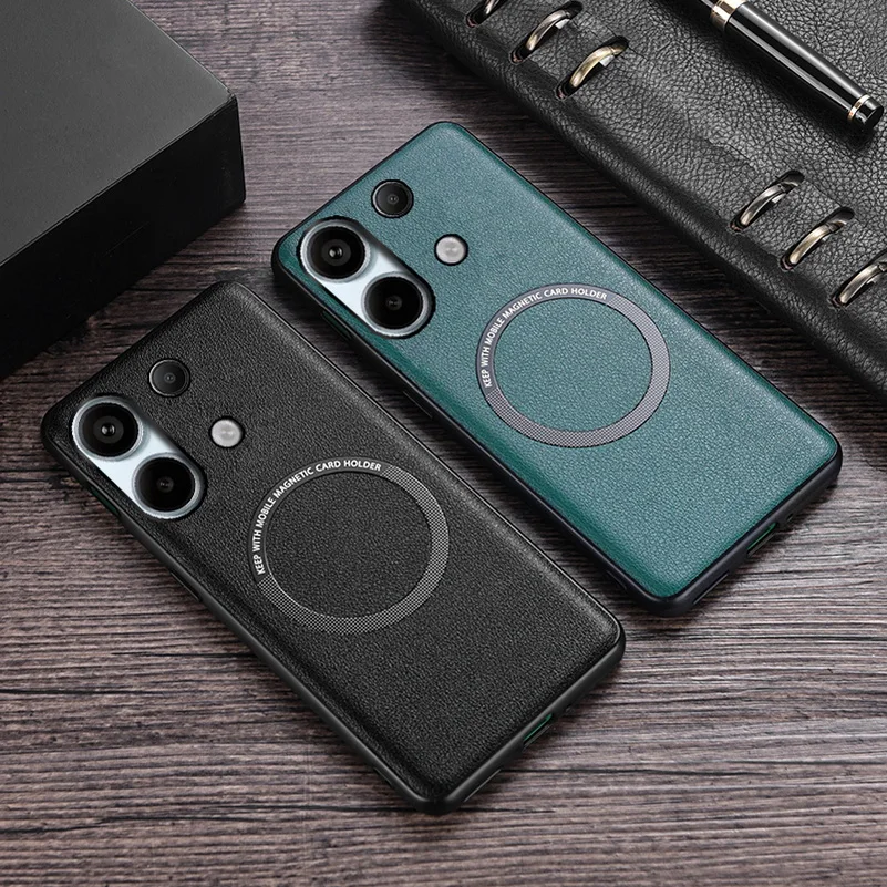 Comprar Magsafe funda de carga inalámbrica magnética para Xiaomi Redmi Note 13 Pro 12T Pro 12 Pro + 11 11S 10 Pro Redmi 13C, cubierta de cuero PU
