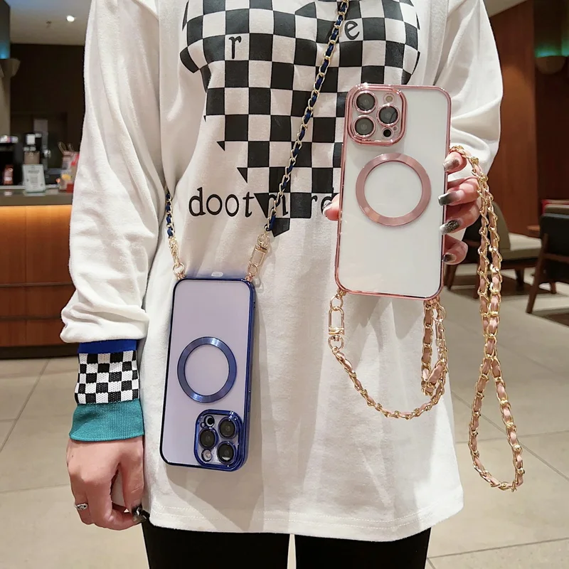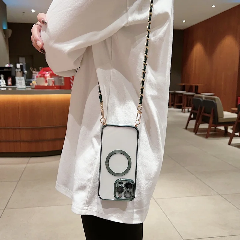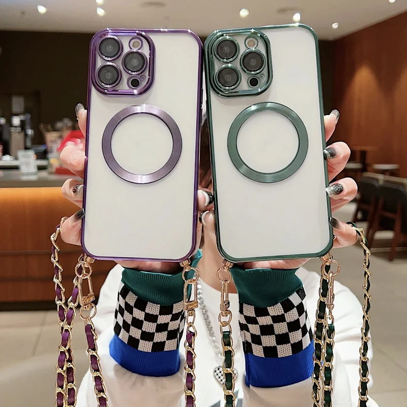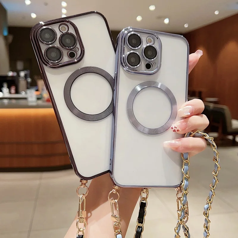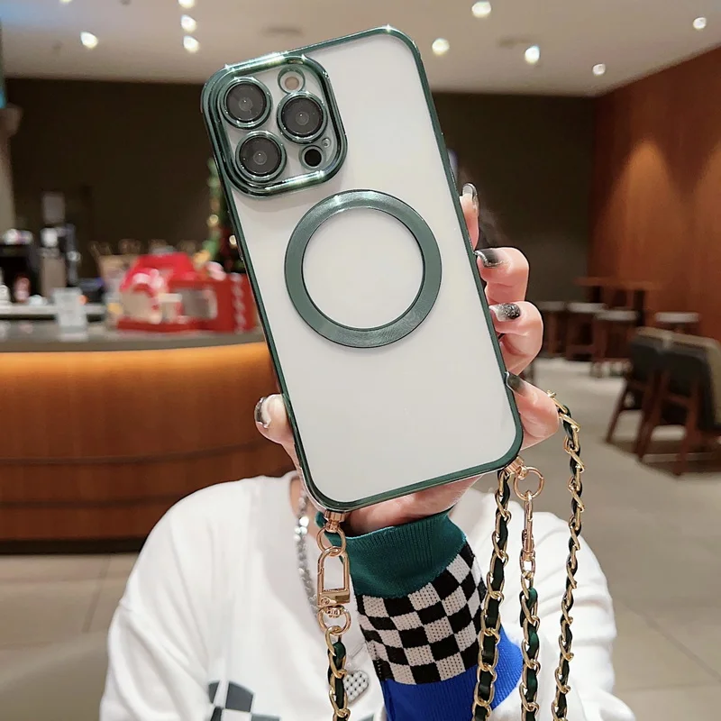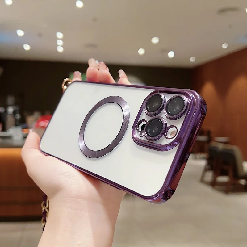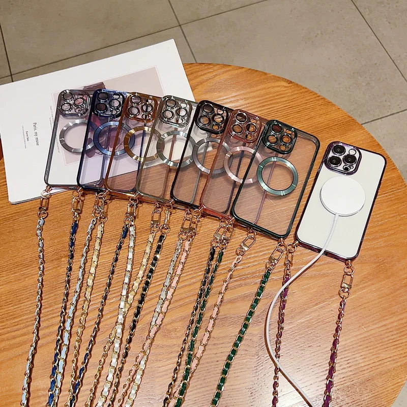Comprar Magsafe-funda con cordón de cambio inalámbrico para iPhone 14 Pro Max 13 Pro Max 12 11 14 Plus, cubierta magnética de revestimiento transparente