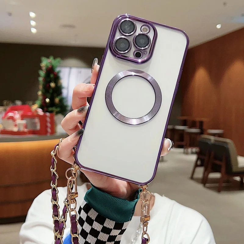 Comprar Magsafe-funda con cordón de cambio inalámbrico para iPhone 14 Pro Max 13 Pro Max 12 11 14 Plus, cubierta magnética de revestimiento transparente