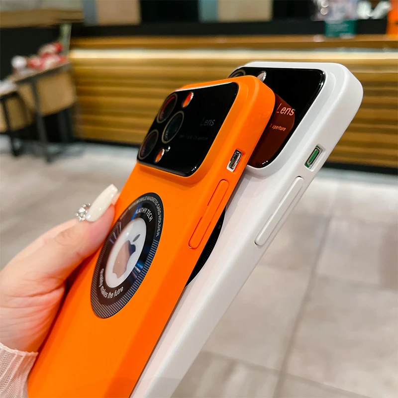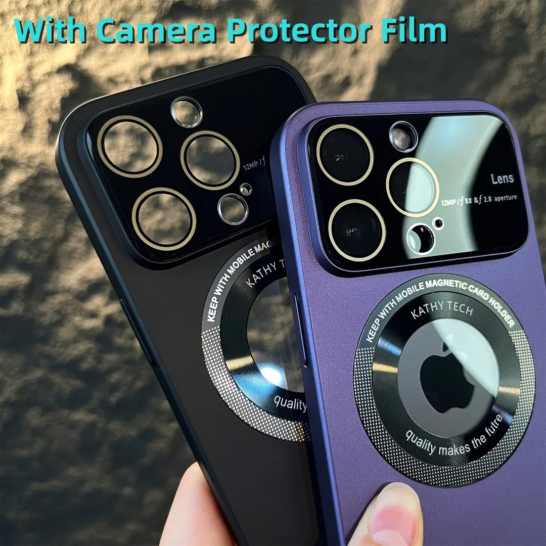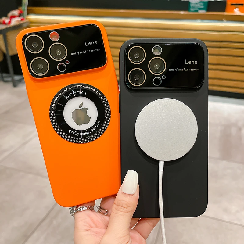 Comprar Magsafe-funda dura con logotipo para ventana grande, Protector de cámara, cubierta de carga, para iPhone 14 Pro Max 12 Pro 13Pro Max 11 14 Plus