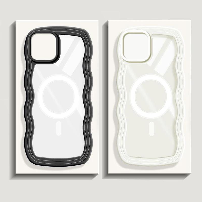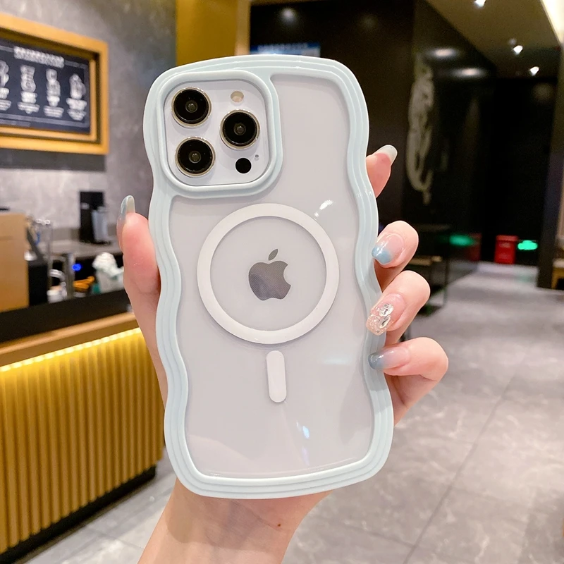 Funda de carga inalámbrica magnética Magsafe de lujo para IPhone 14 13 12 11 Pro Max Clear Wave Shape Silicone PC Bumper Cover