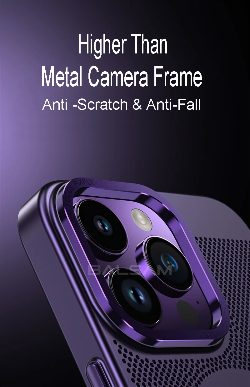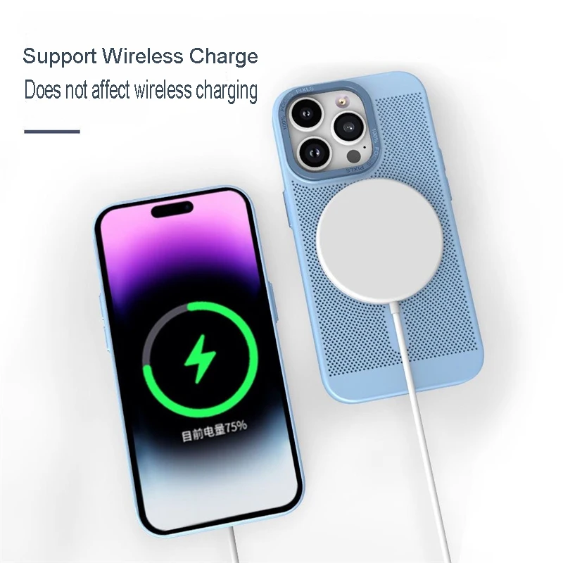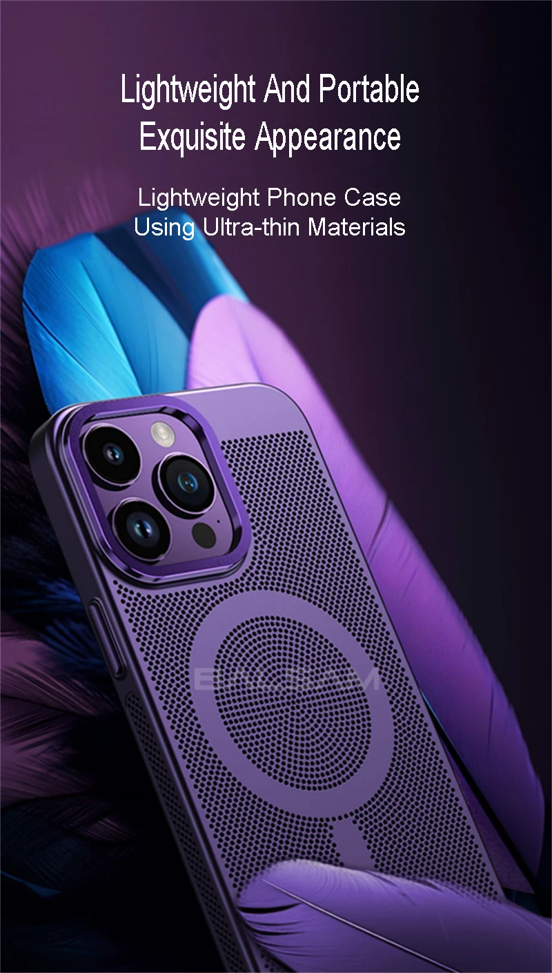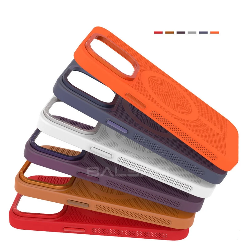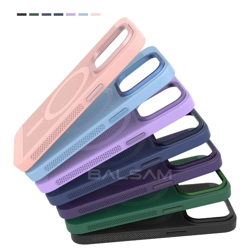 Disipación de calor para funda magnética Magsafe para iPhone 15 14 Plus 13 12 11 Pro Max Marco de lente de Metal mate cubierta dura de rejilla transpirable