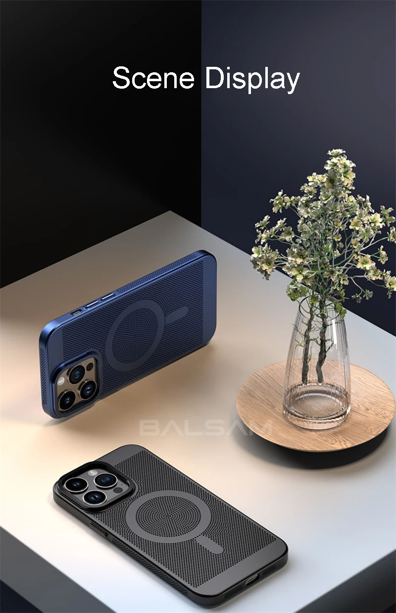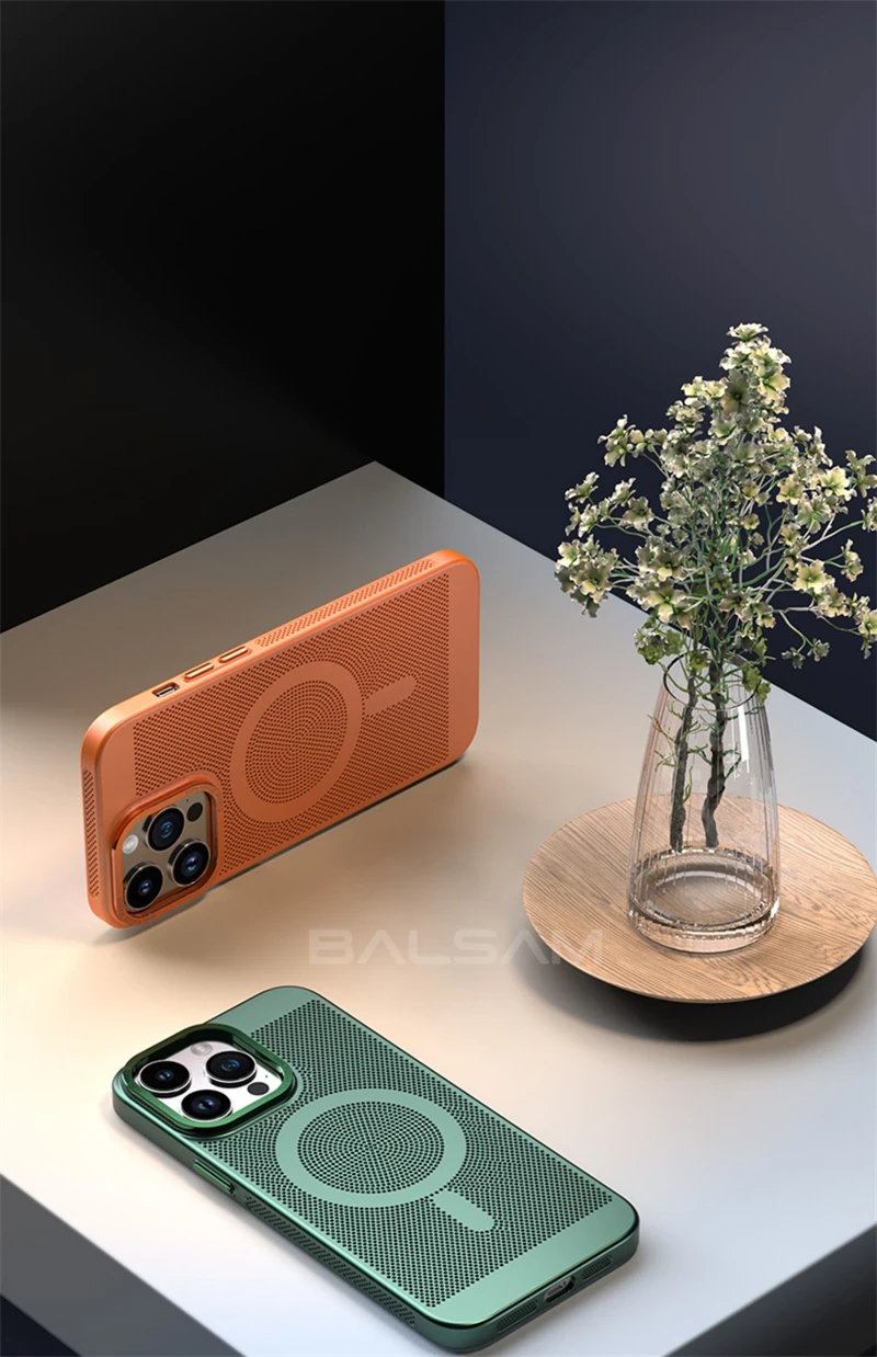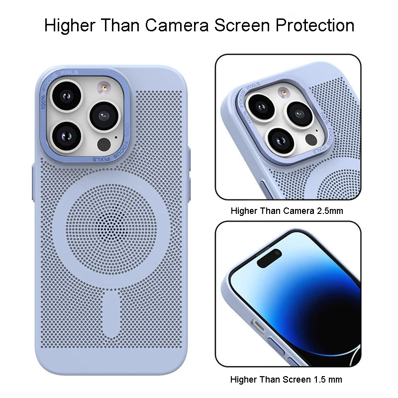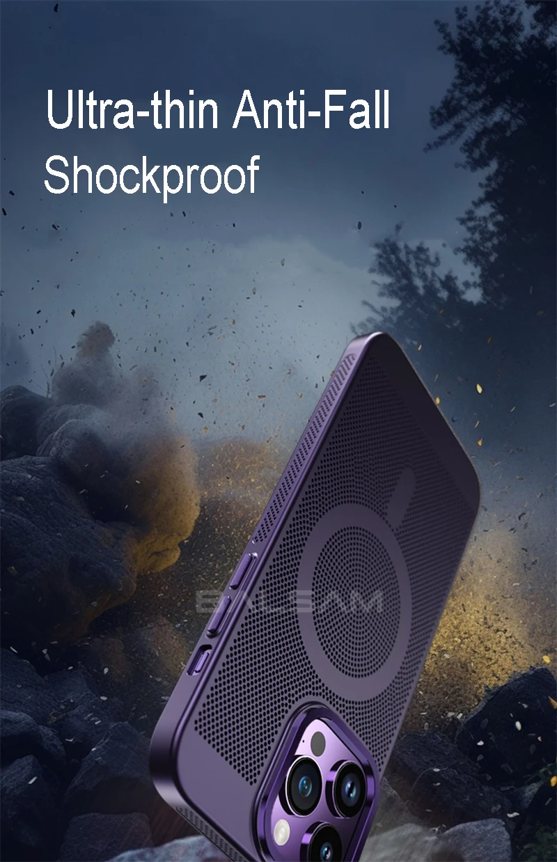 Disipación de calor para funda magnética Magsafe para iPhone 15 14 Plus 13 12 11 Pro Max Marco de lente de Metal mate cubierta dura de rejilla transpirable