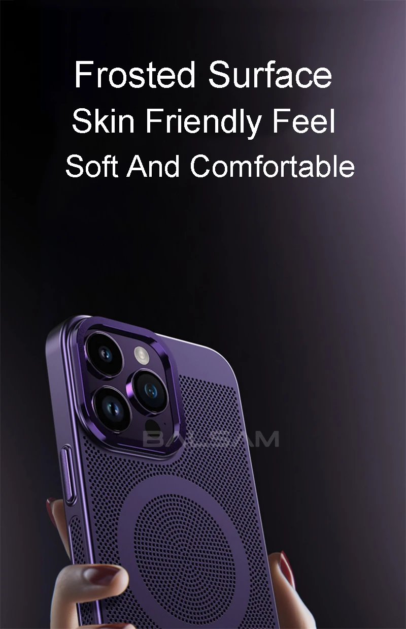 Magsafe-funda magnética con disipación de calor para iPhone, carcasa dura de rejilla transpirable mate con marco de lente de Metal para iPhone 14, 15 Plus, 13, 12, 11 Pro Max