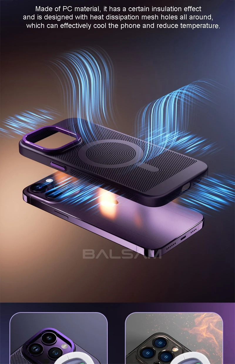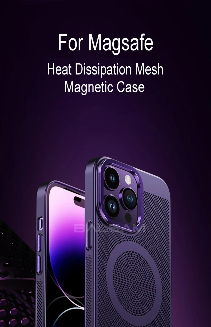 Comprar Magsafe-funda magnética con disipación de calor para iPhone, carcasa dura de rejilla transpirable mate con marco de lente de Metal para iPhone 14, 15 Plus, 13, 12, 11 Pro Max