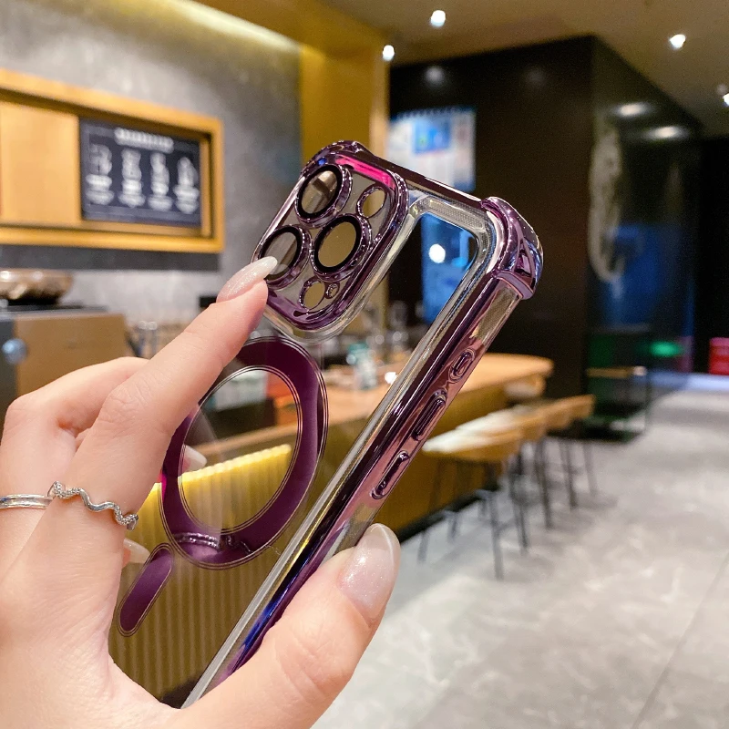 Comprar Magsafe-funda magnética de lujo con revestimiento de Color sólido, funda de teléfono anticaída de cuatro esquinas para iPhone 16 Pro Max 14 11 12 13 15 Pro Max
