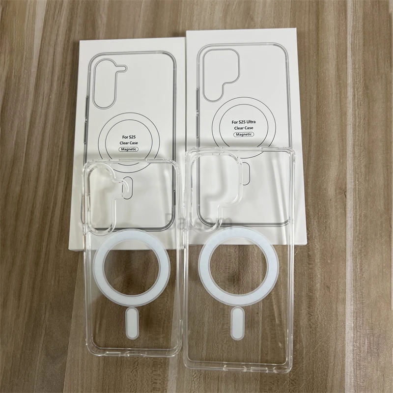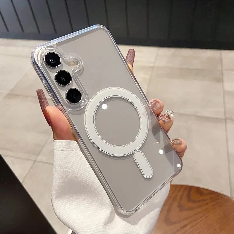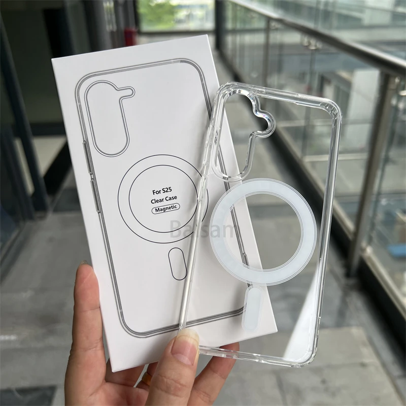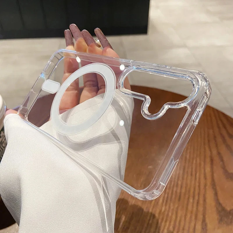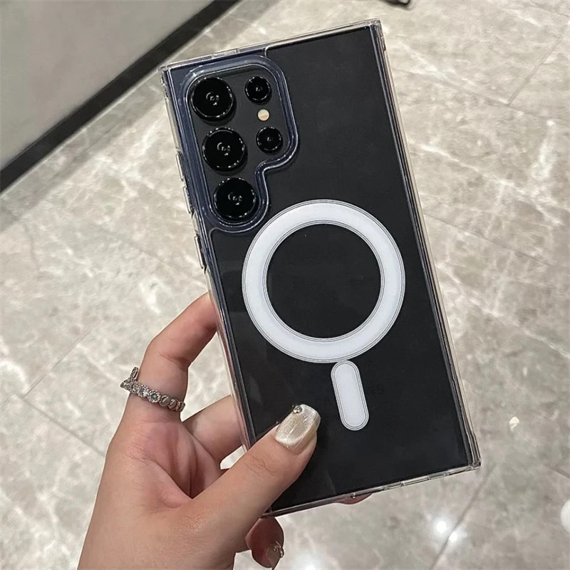 Para Magsafe funda transparente magnética para Samsung S25 Edge S24 S23 S22 S21 S20 Plus Note 20 Ultra FE A16 A54 A26 A36 A56 A35 cubierta A55