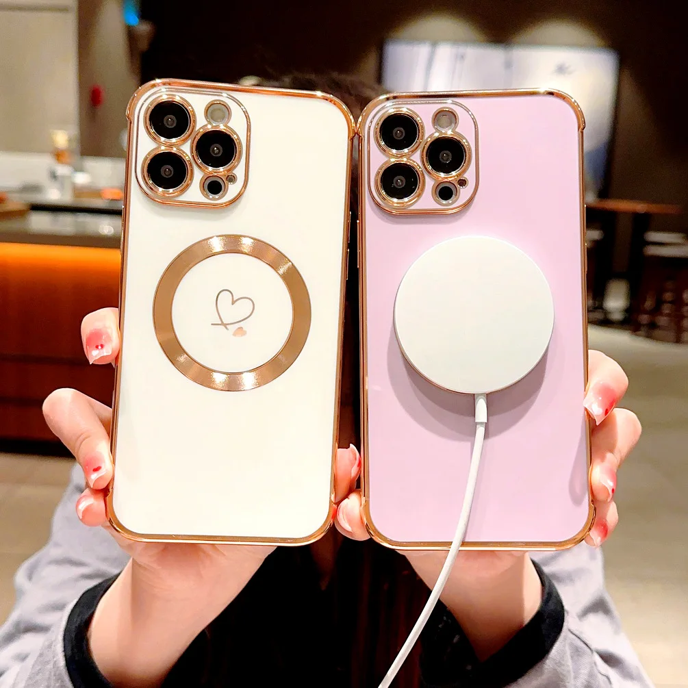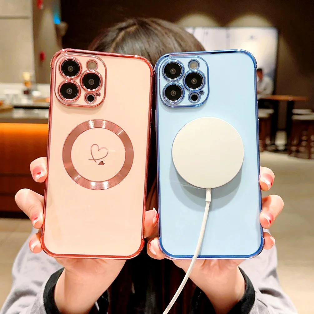 Comprar Magsafe-funda de protección de lente magnética para iPhone 14 Pro Max 14 Plus 13 Pro 12 11, funda de silicona suave con carga inalámbrica