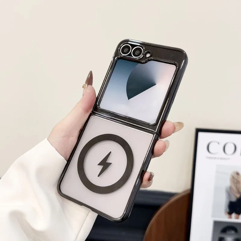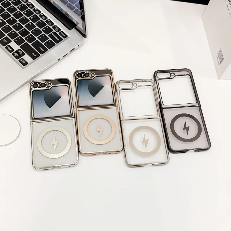 Magsafe-funda de teléfono con borde chapado de Color sólido, carga inalámbrica magnética, de lujo, para Samsung Galaxy Z Filip 6 5 4 3