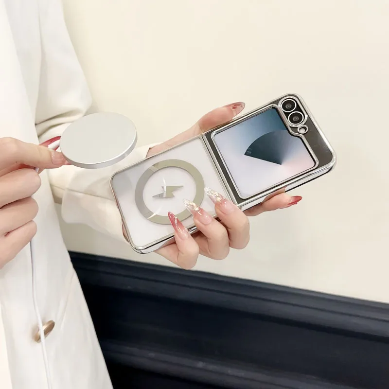 Magsafe-funda de teléfono con borde chapado de Color sólido, carga inalámbrica magnética, de lujo, para Samsung Galaxy Z Filip 6 5 4 3 - imagen 5