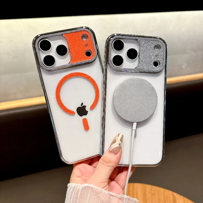 Para Magsafe funda de teléfono de carga inalámbrica para Iphone 17 Pro Max Air Glitter lente protección de cámara cubierta transparente para IPhone17