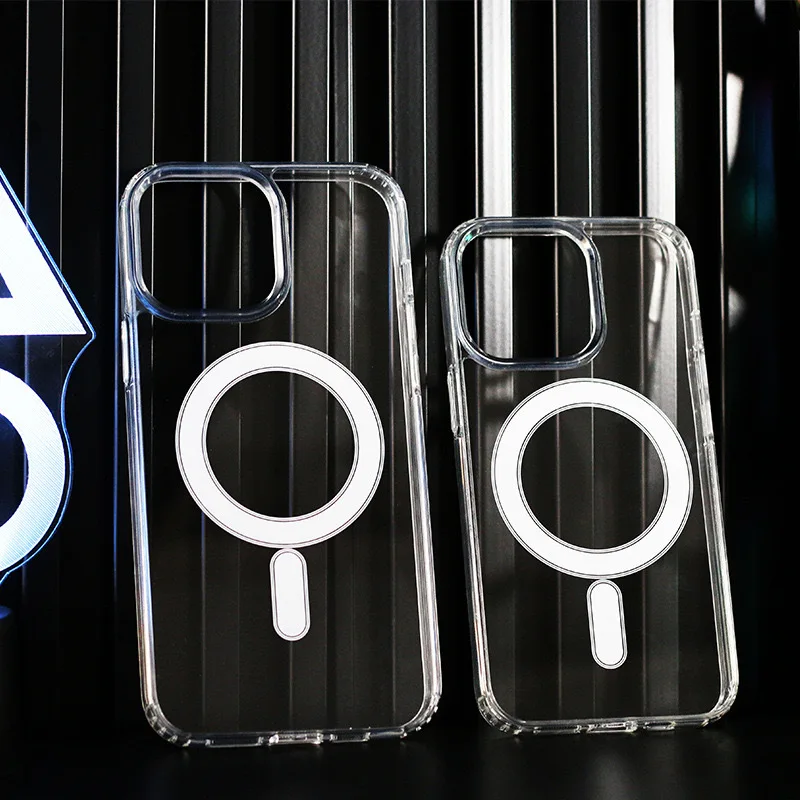 Comprar Magsafe-funda de teléfono de carga inalámbrica de lujo para iPhone 15, 14, 13 Pro Max Plus, fundas transparentes magnéticas