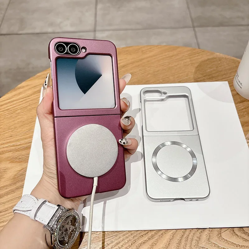 Magsafe-funda de teléfono con carga inalámbrica magnética, chapado en Color sólido, sin borde, para Samsung Galaxy Flip 6, 5, 4, 3, contraportada de parachoques