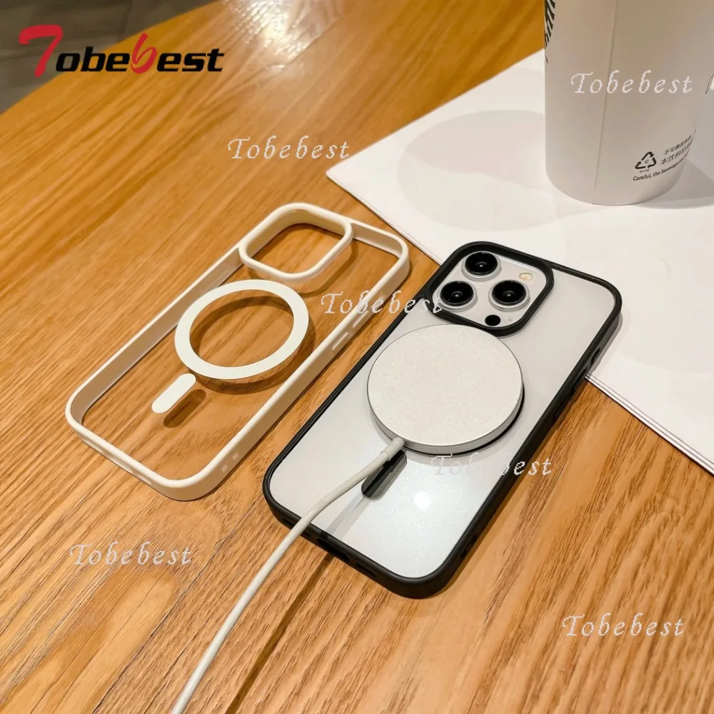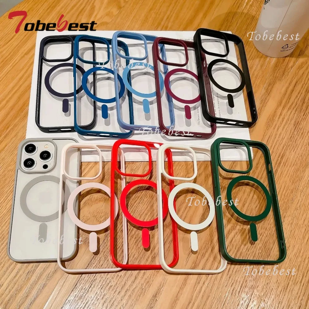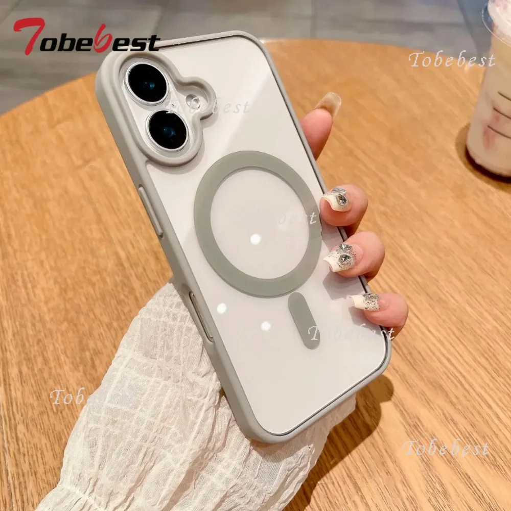 Para Magsafe funda de teléfono con carga inalámbrica magnética para iPhone 16E 16 15 14 13 12 Mini 11 Pro Max Plus funda transparente acrílica dura