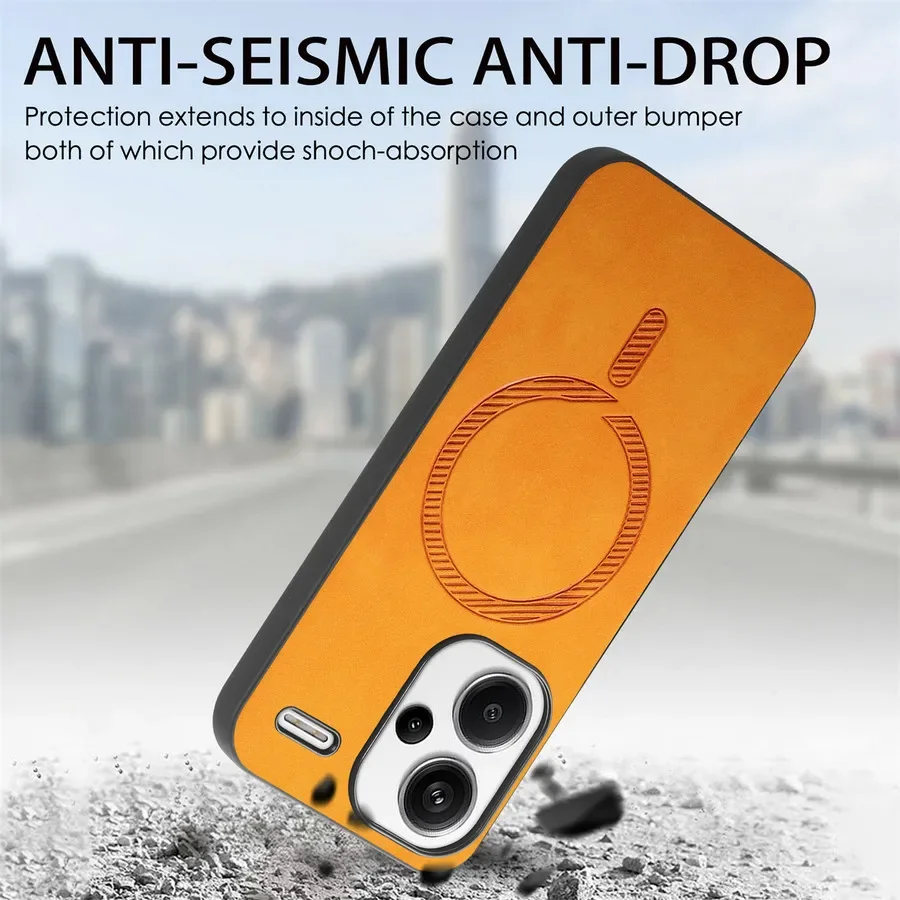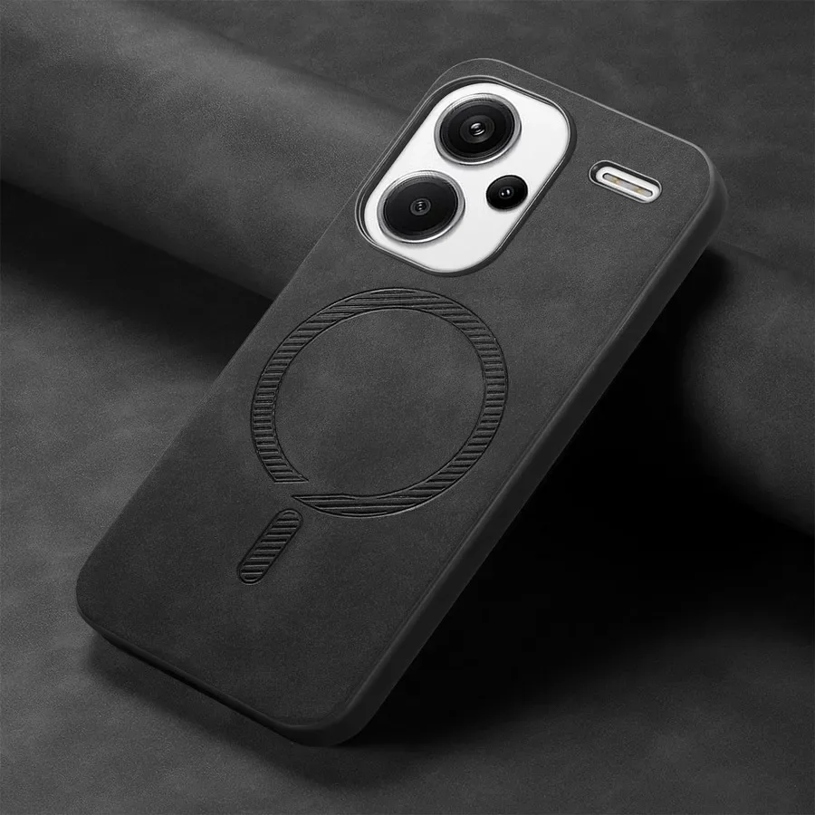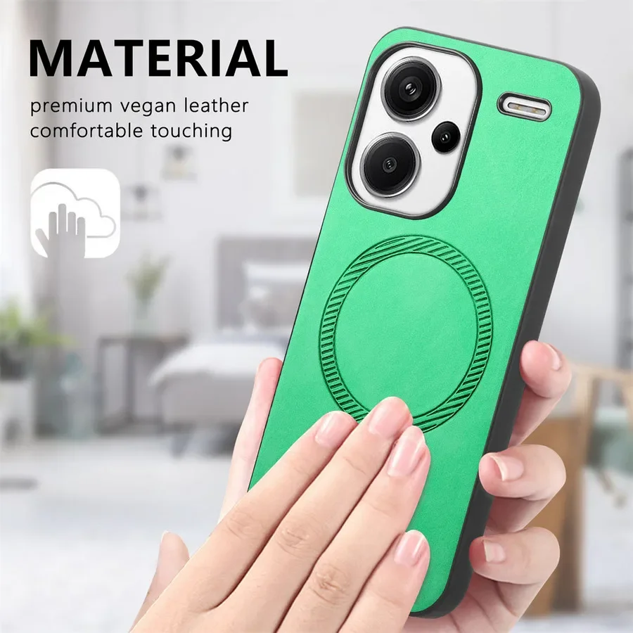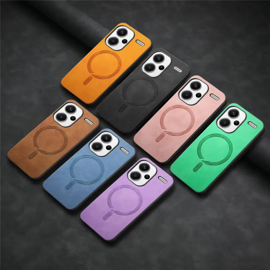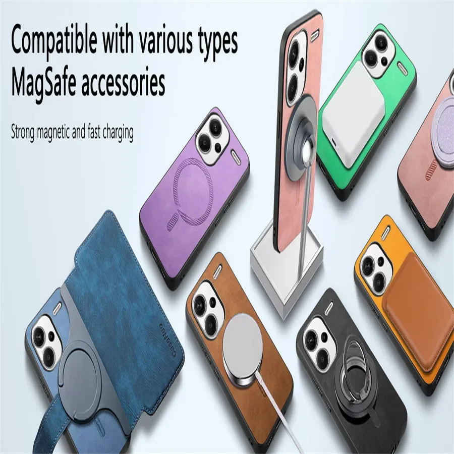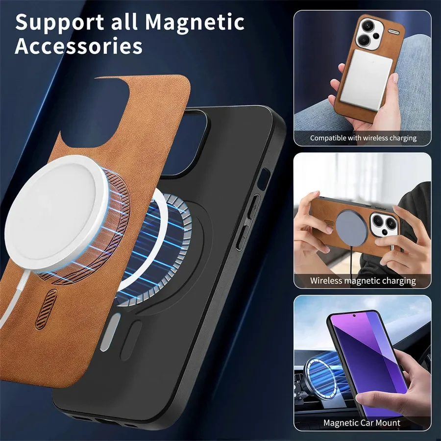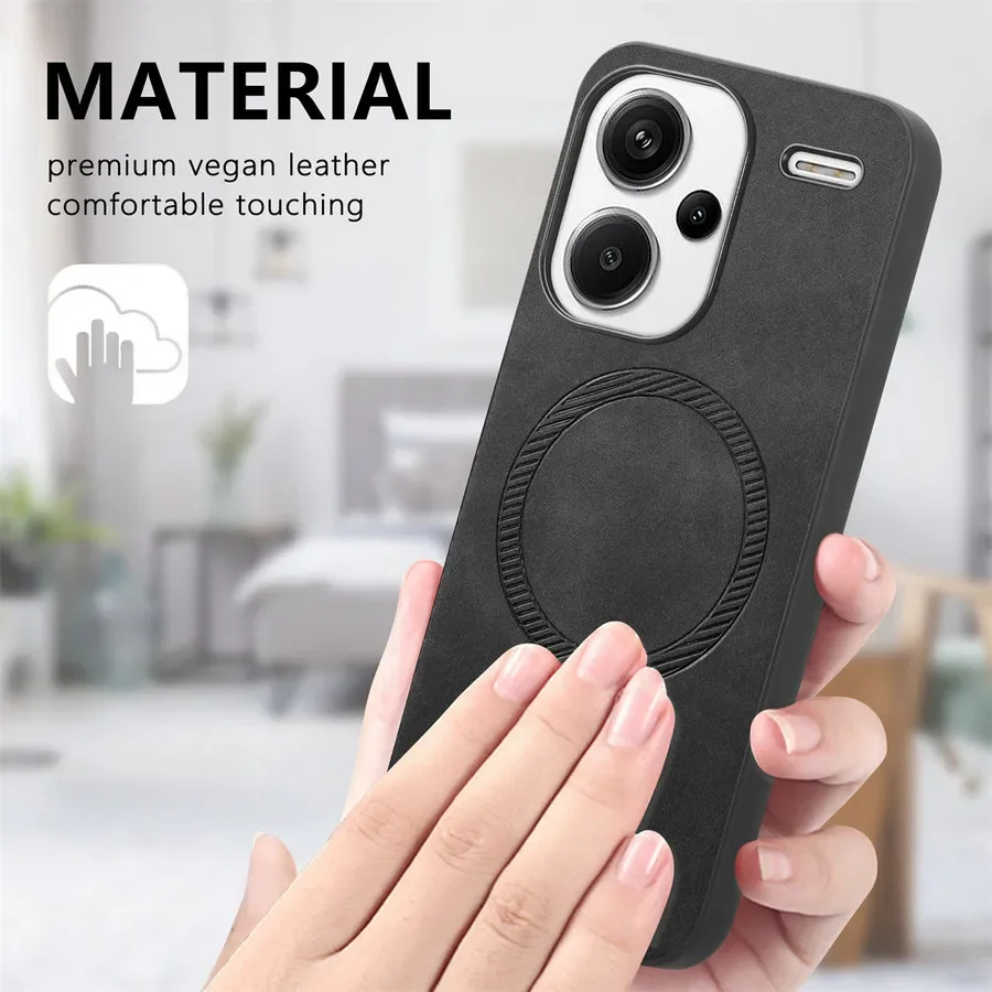 Magsafe-funda trasera magnética de cuero de lujo para Redmi Note 13 Pro Plus Note13 4G 12R 13R Pro, carcasa de carga inalámbrica