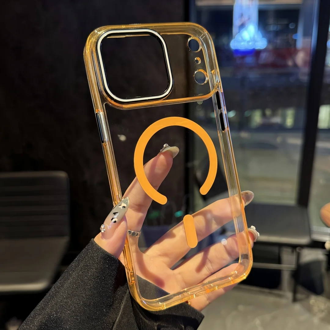Para Magsafe funda Ultra delgada transparente de color caramelo magnético para iPhone 17 Air 16 15 14 17 Pro Max TPU borde acrílico carcasa a prueba de golpes