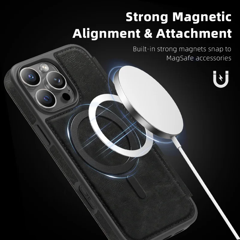 Comprar Magsafe Magnético 360 ° Funda de cuero con protección completa para iPhone 16 Pro Max E 14 12 13 15 Pro Max