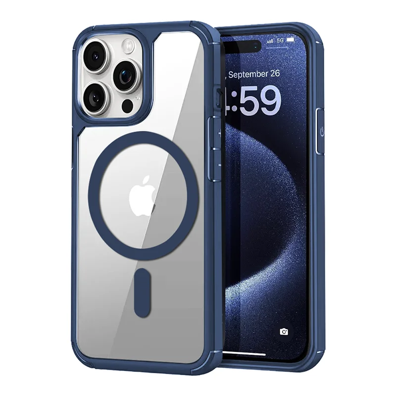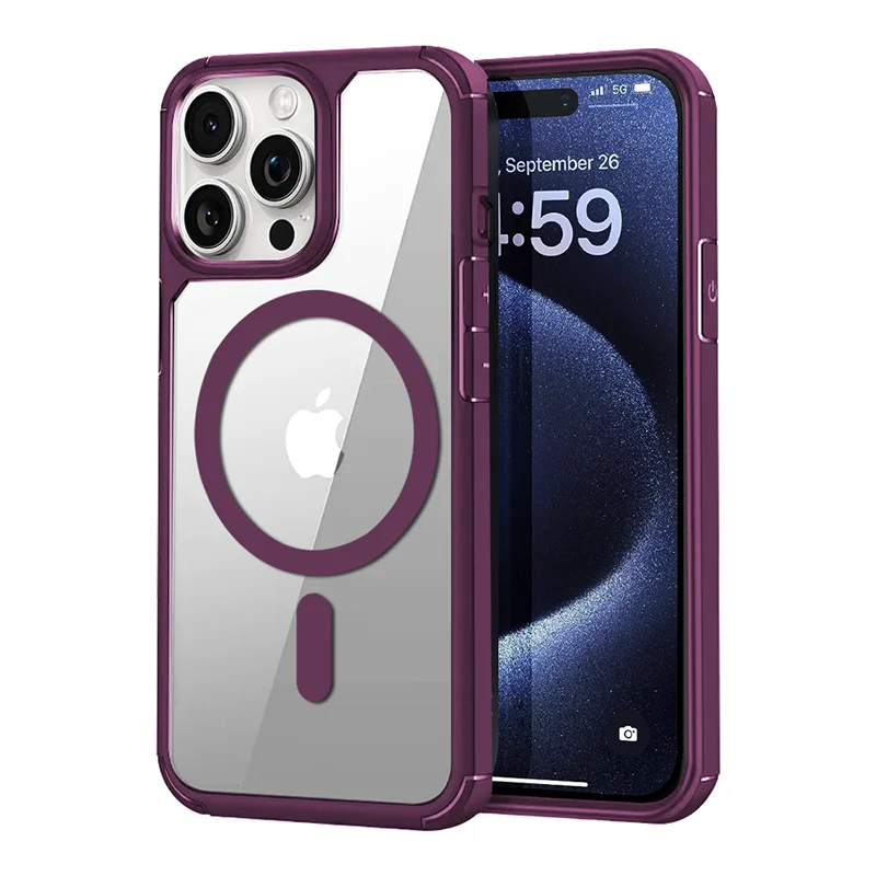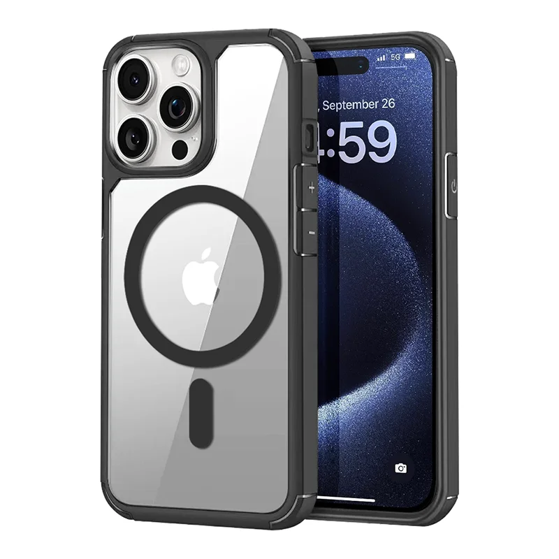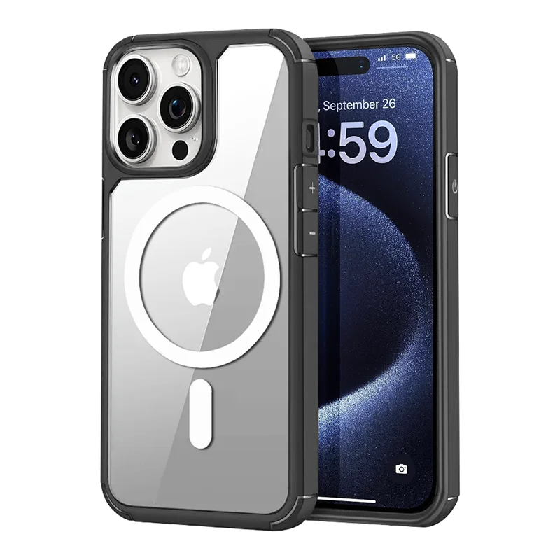 Para Magsafe magnético suave TPU borde + PC transparente a prueba de golpes funda de teléfono para IPhone 15 Pro Max 13 12 11 14 Pro Max cubierta de parachoques