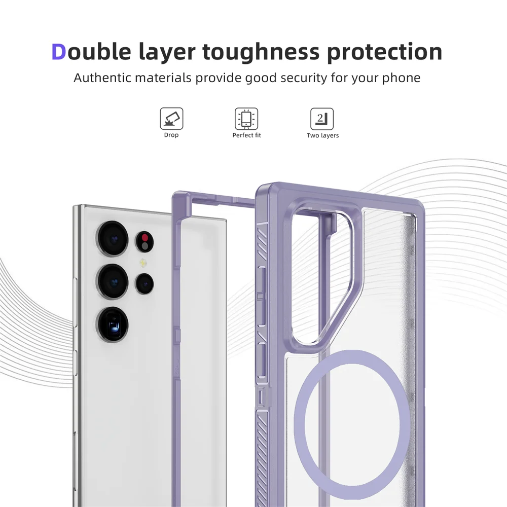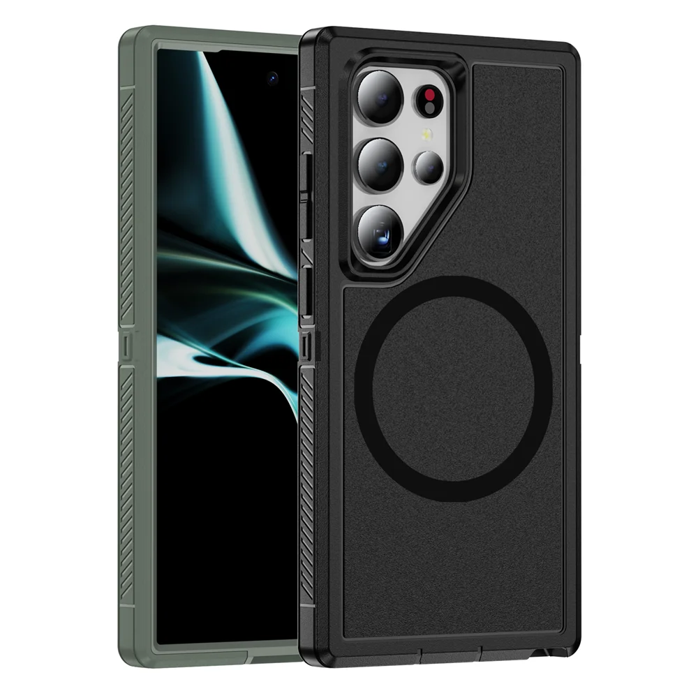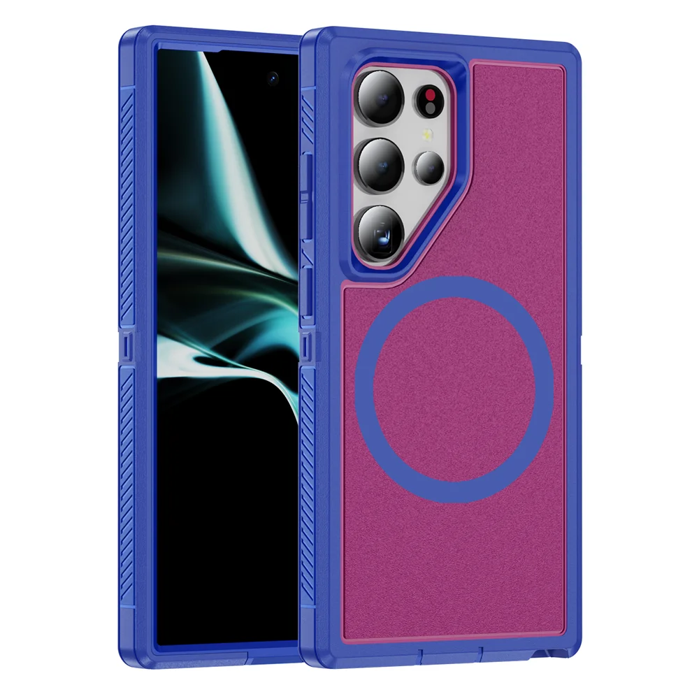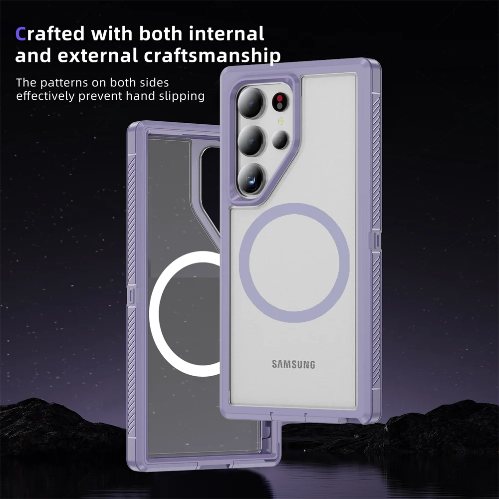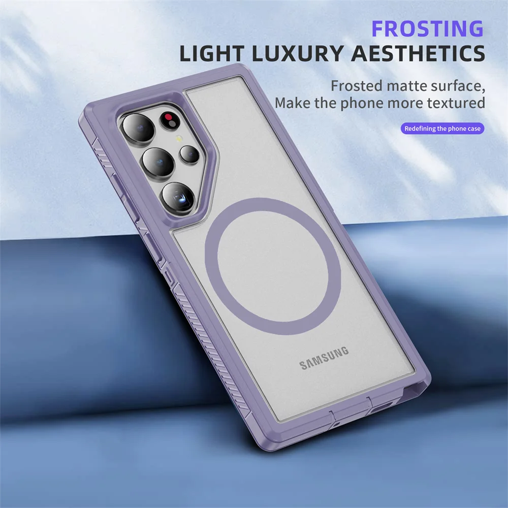 Para Magsafe Matte Armor Funda magnética para Samsung S24 S22 S23 Ultra S24 Plus S23 FE Side antideslizante Stripe Design Protector Cover