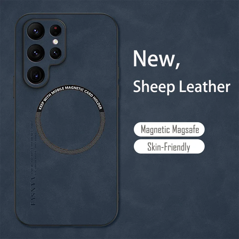 Para Magsafe Samsung Galaxy S24 S20 S21 S22 S23 FE Note 20 Ultra 10 Plus funda de teléfono suave de cuero magnético Vintage de piel de oveja