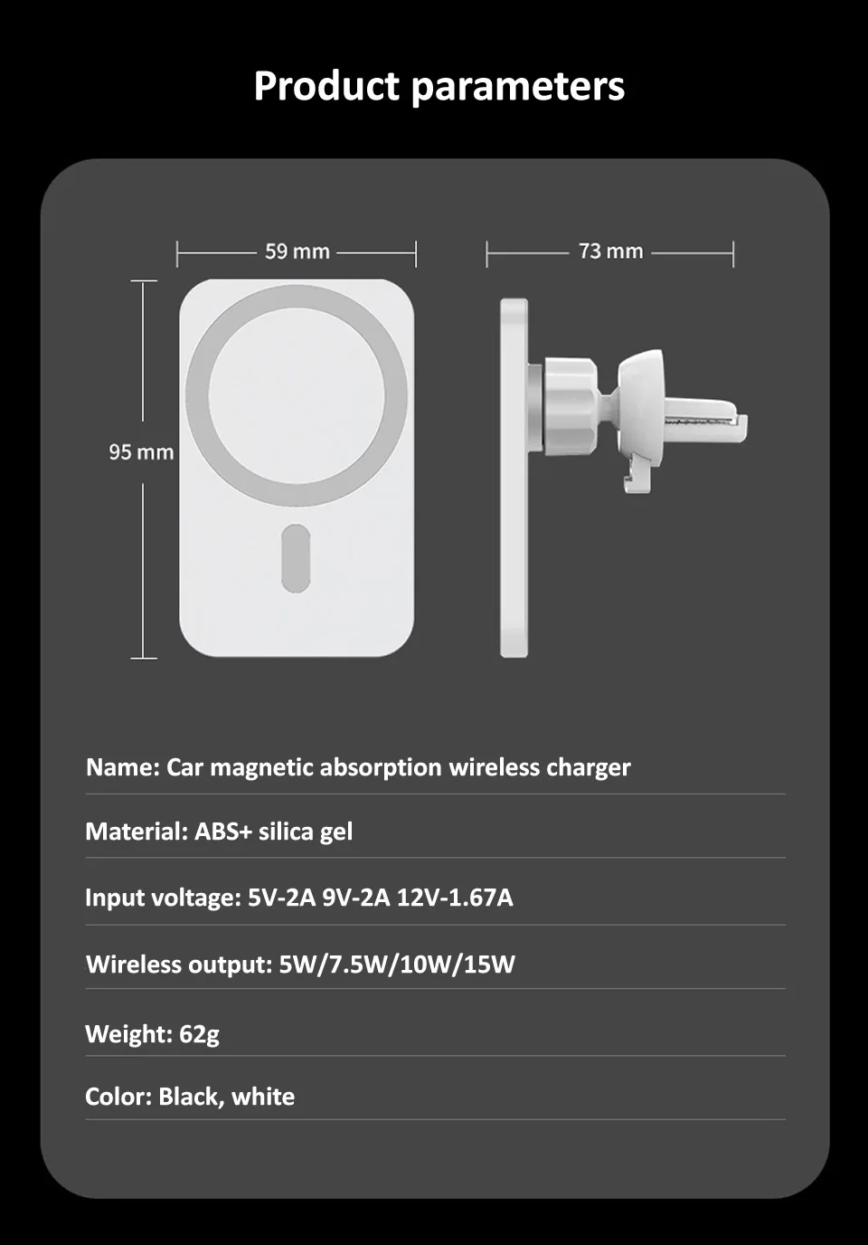 Nombre: Cargador inalámbrico de absorción magnética para coche
