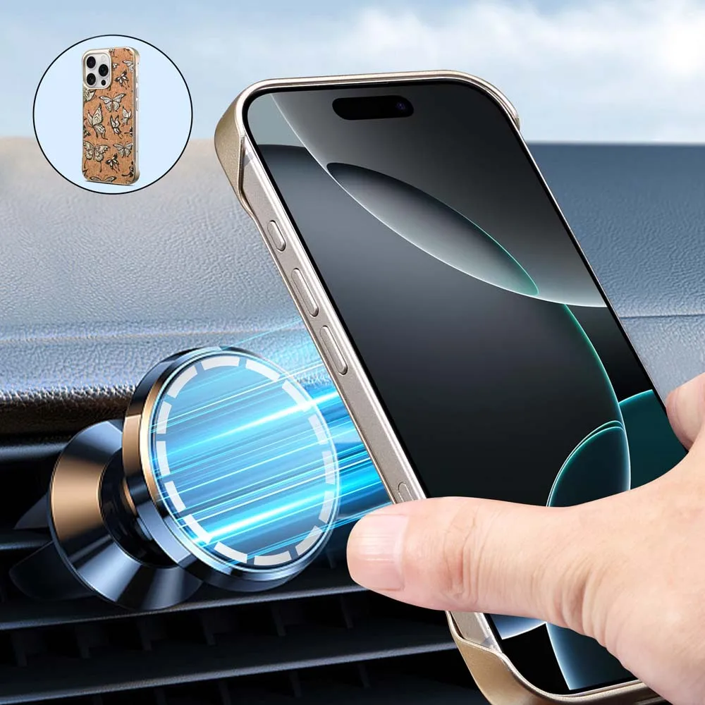Funda de teléfono Magsafe con textura de madera y mariposa para iPhone 16 15 14 Pro Max Plus, cubierta dura de carga inalámbrica magnética anticaída para PC