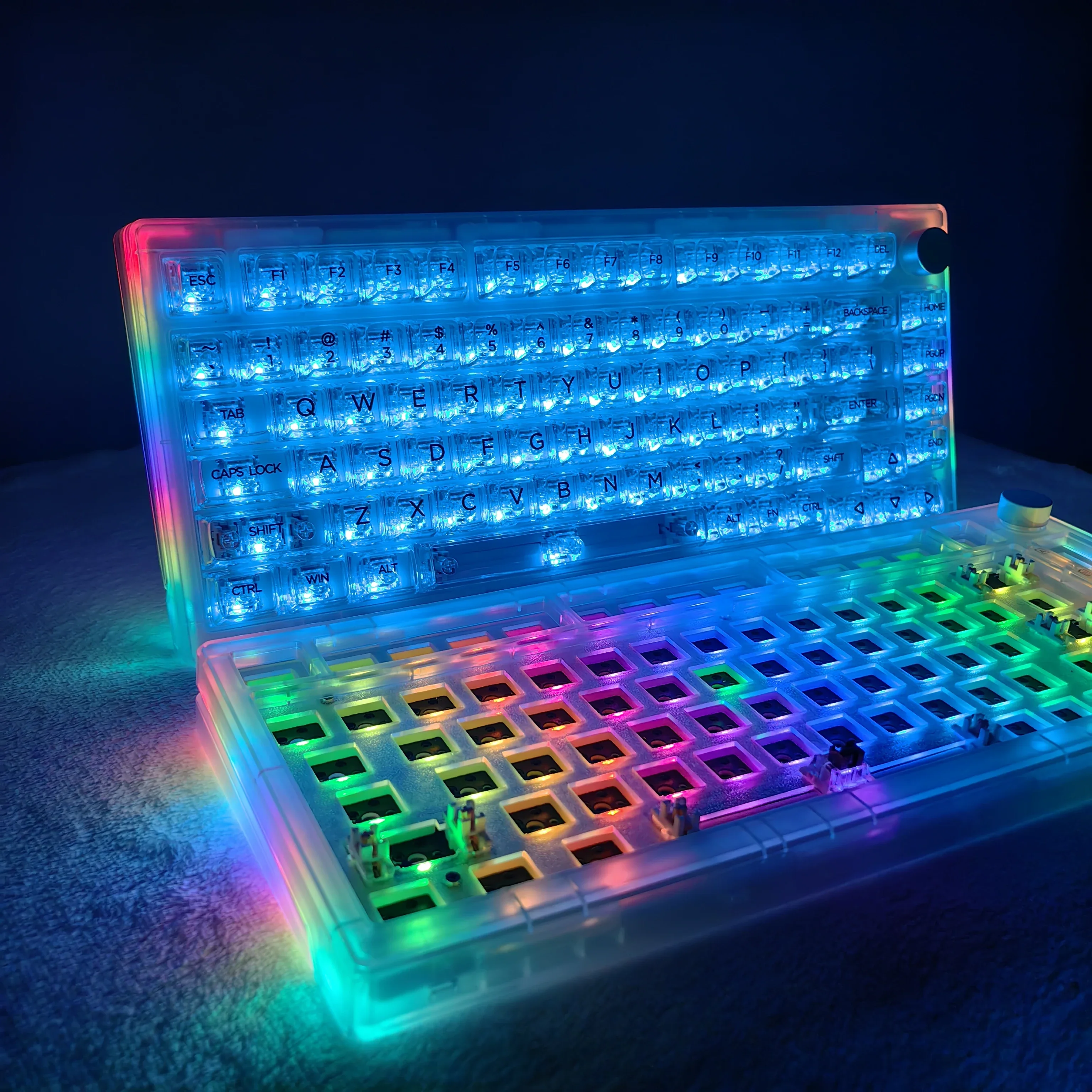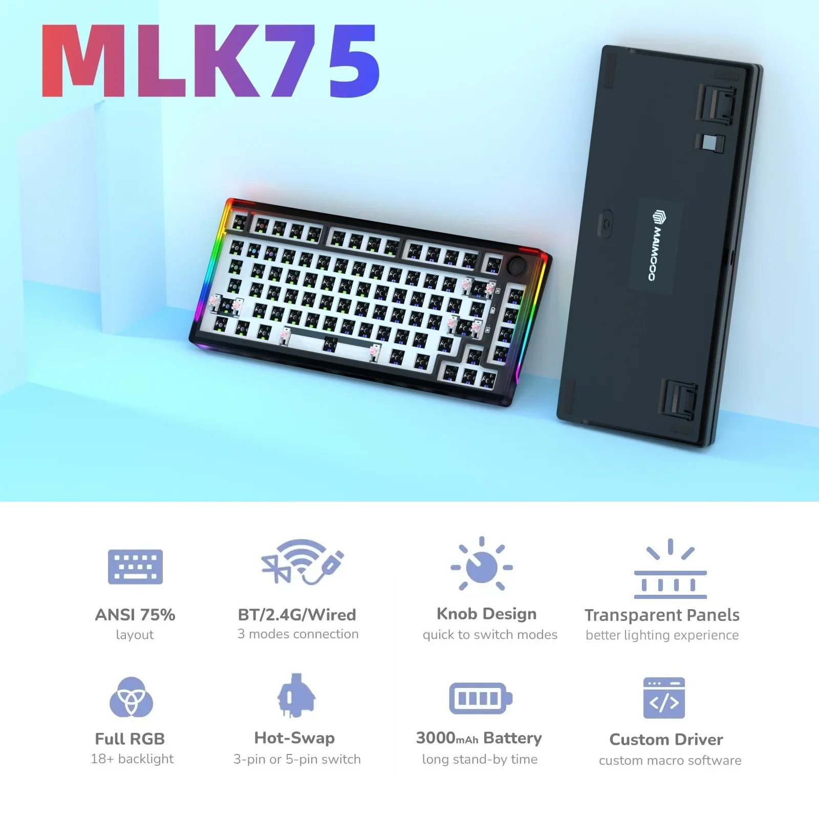 Comprar MAIMOOO MLK75 75% Kit de teclado intercambiable en caliente Bluetooth 2,4G con cable frontal sur RGB luz lateral DIY Kit de teclado transparente de 82 teclas