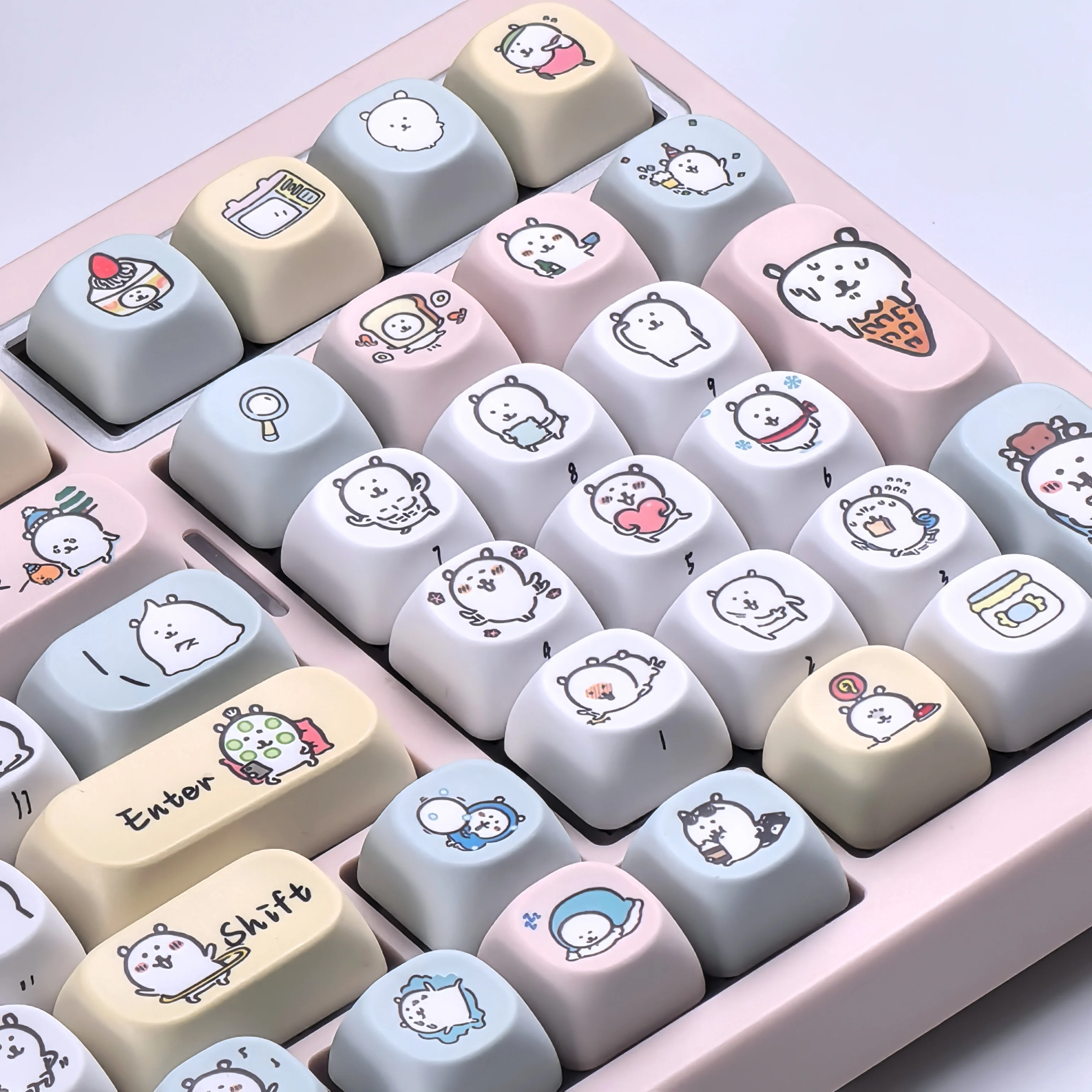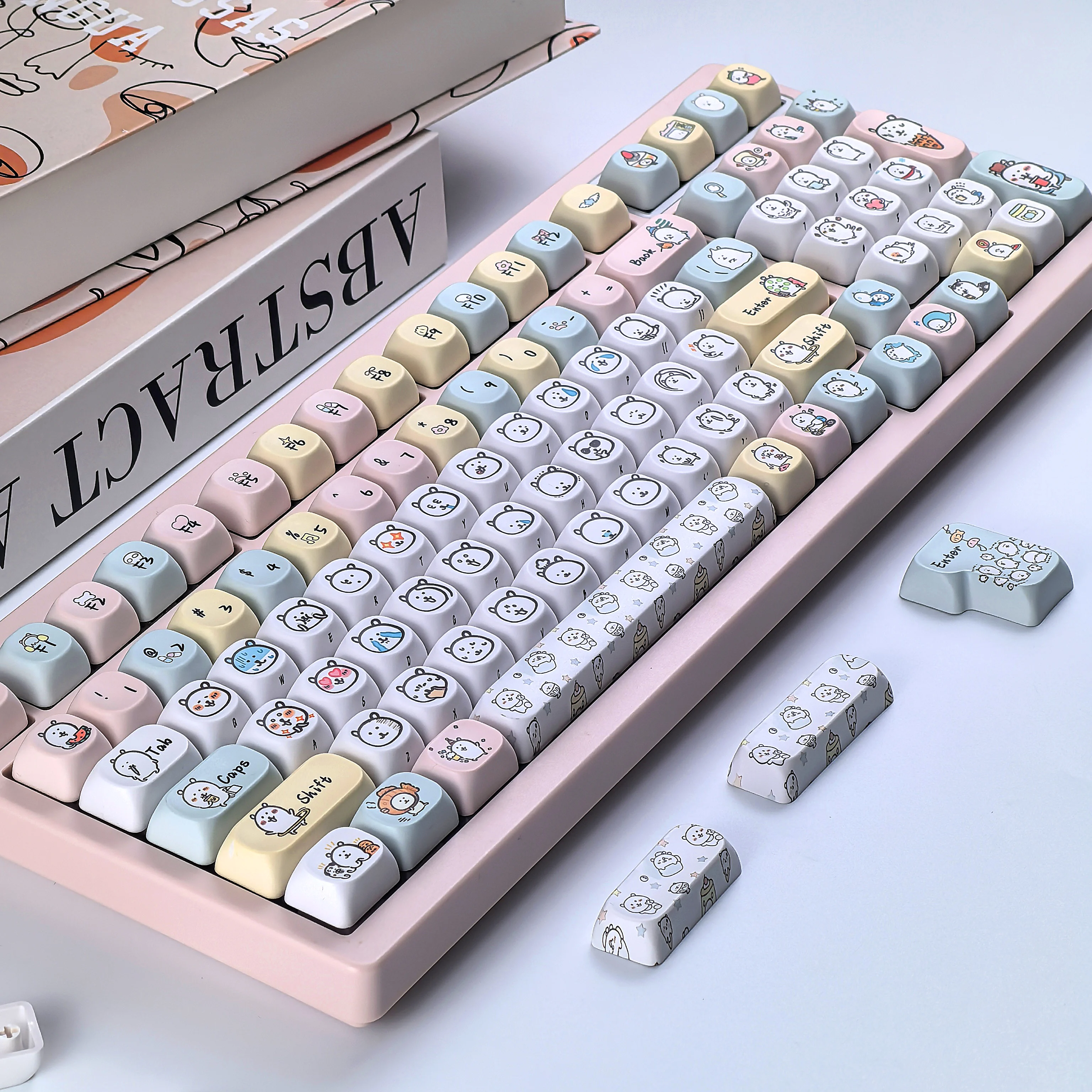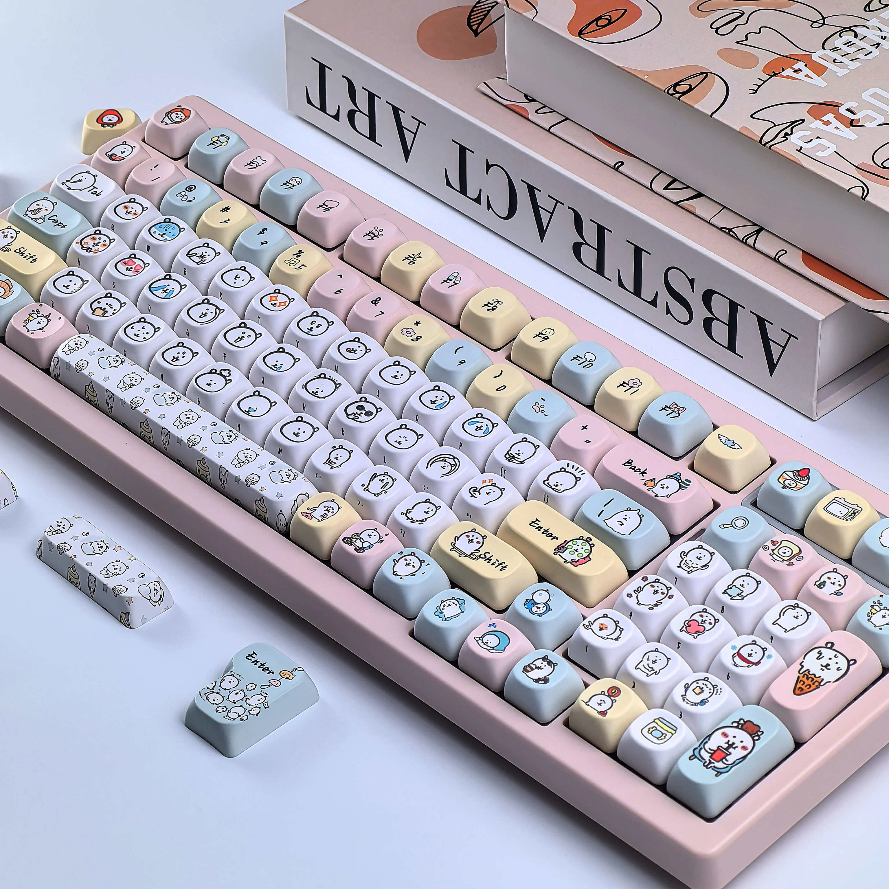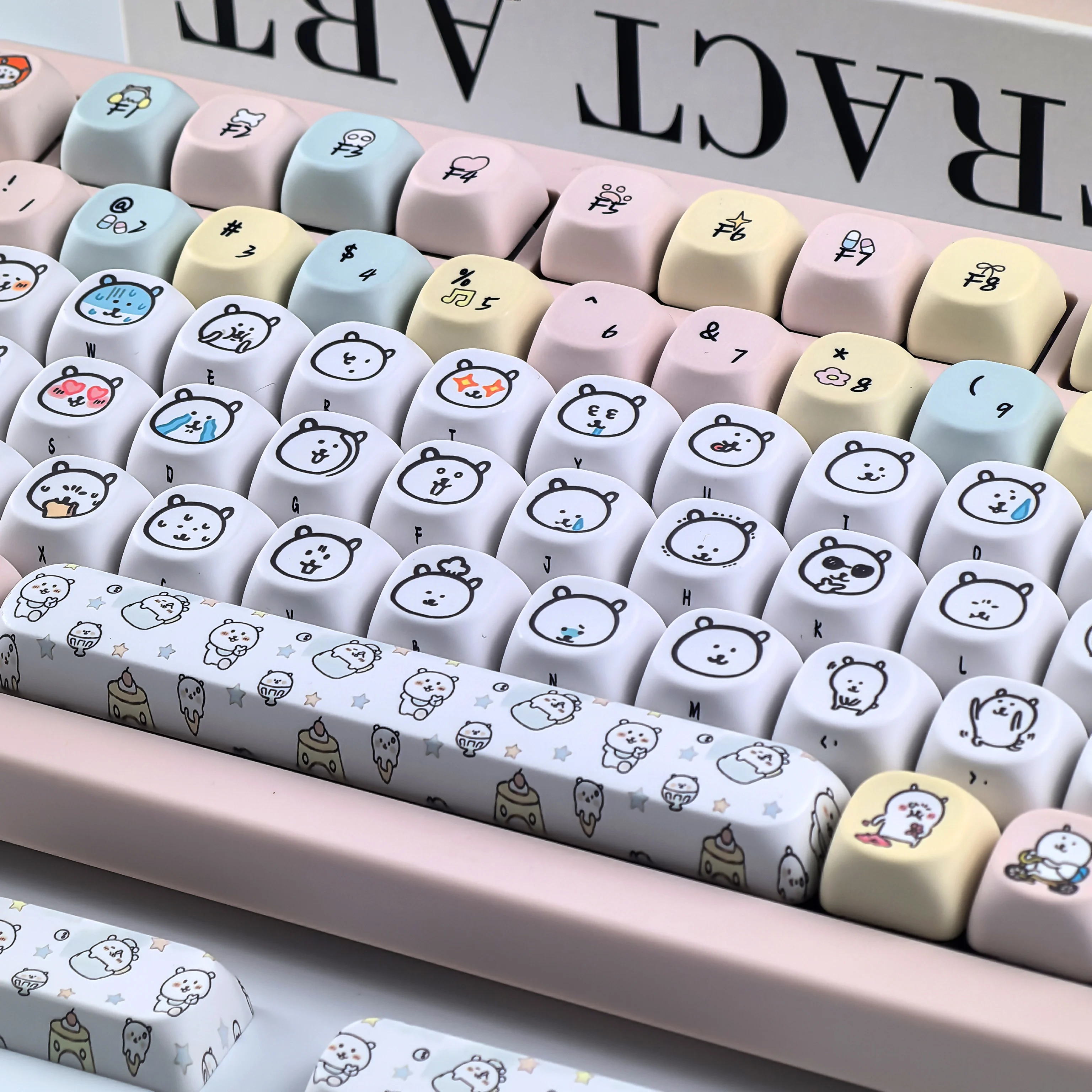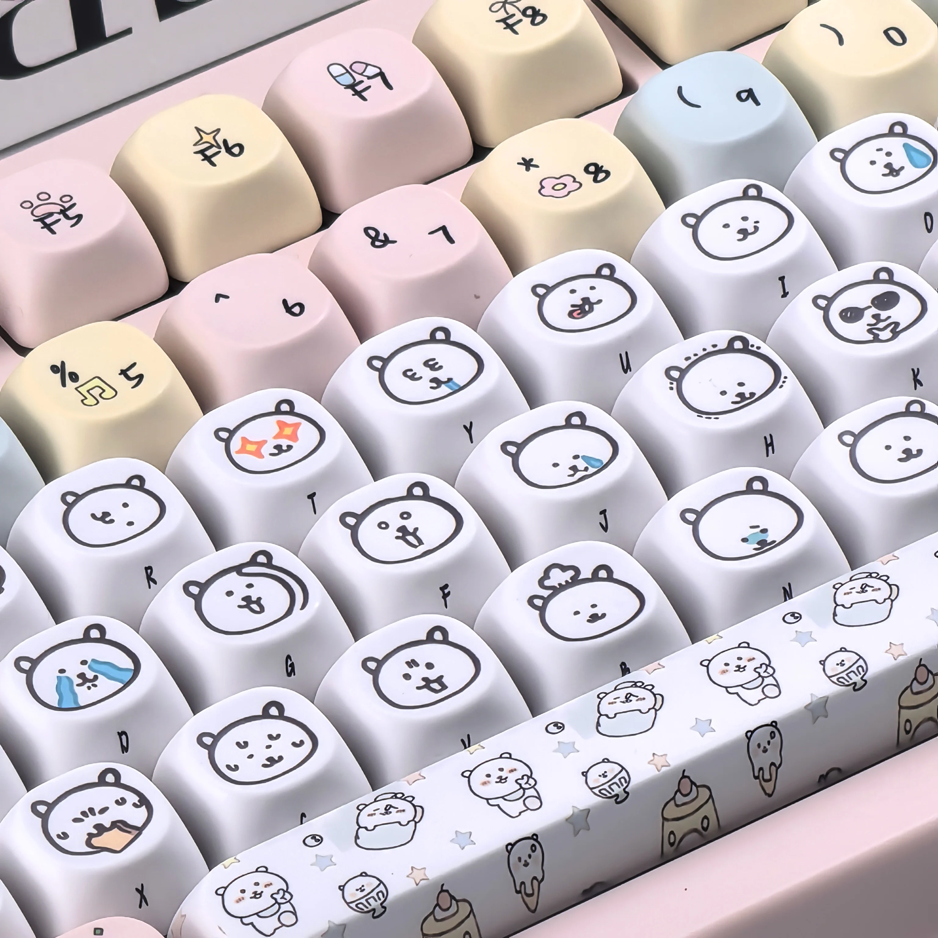MAIMOOO-tapa de llave de oso autoblocante, perfil PBT MOA, dibujos animados, lindo oso blanco, teclas de Anime personalizadas para teclado mecánico MX Switch