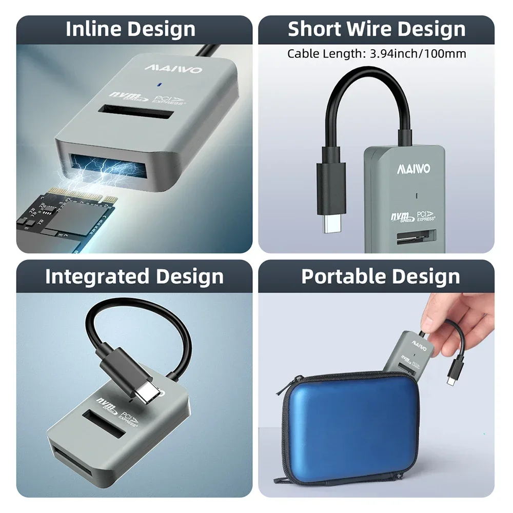Este lector SSD M.2 tiene un diseño en línea integrado, no es necesario conectar un cable USB adicional, es muy portátil y funciona bien con una computadora portátil/teléfono inteligente.