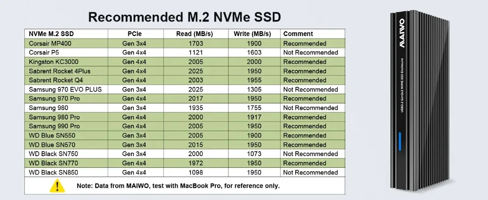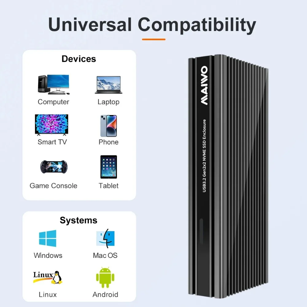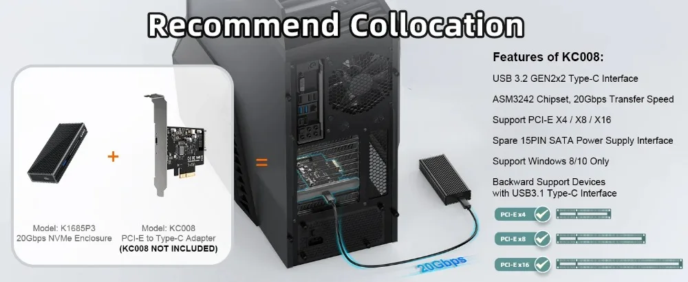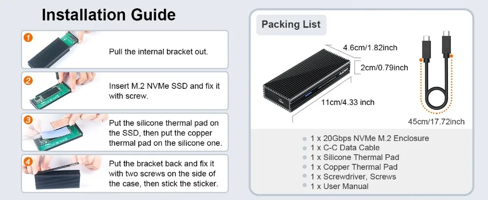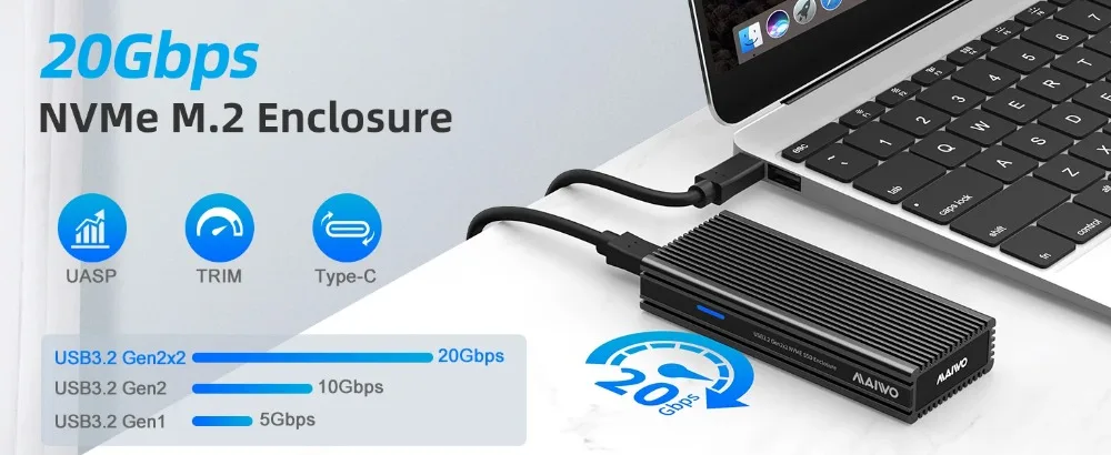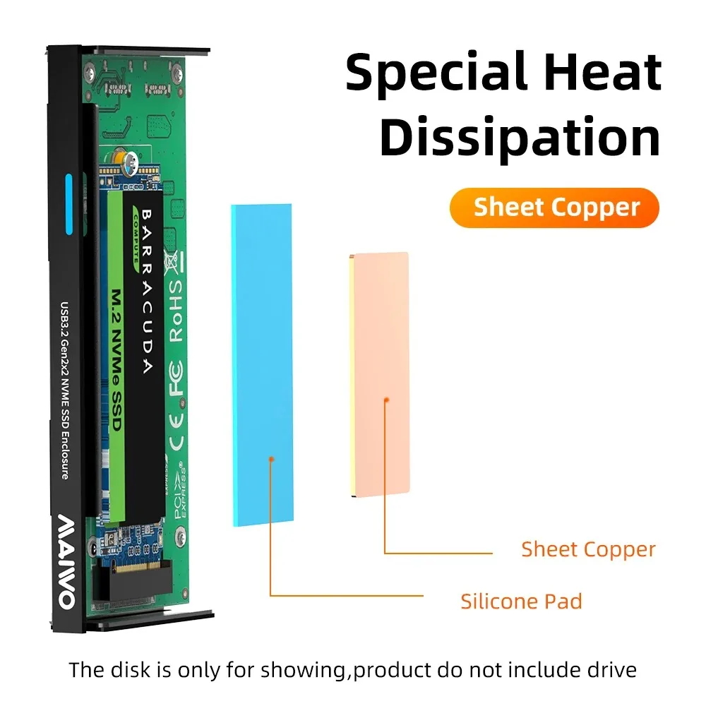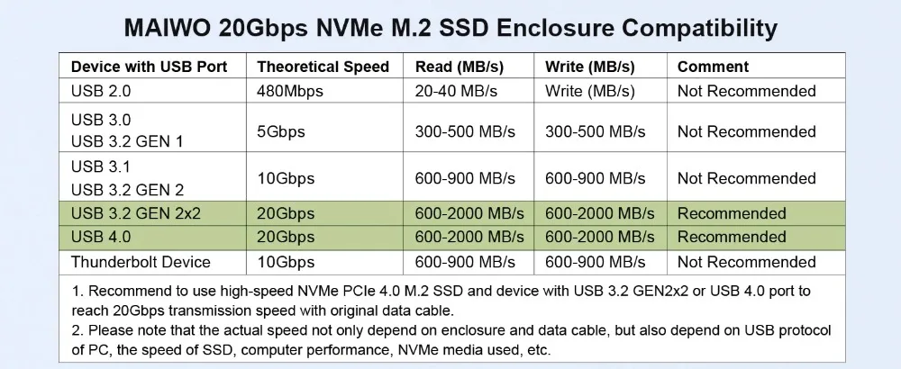 Compatibilidad: esta carcasa para disco duro de 20 Gbps solo funciona con unidades de estado sólido M.2 PCIe NVMe M-Key de 2280 mm.