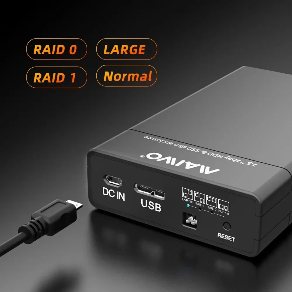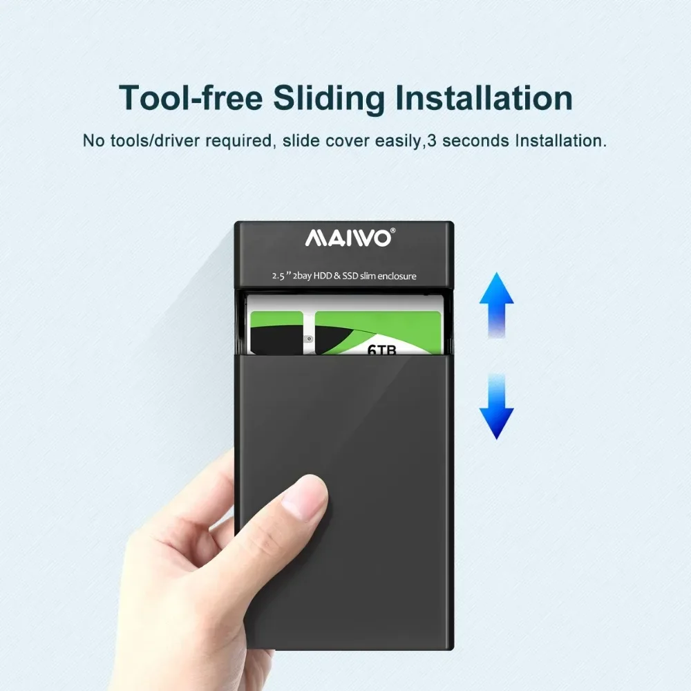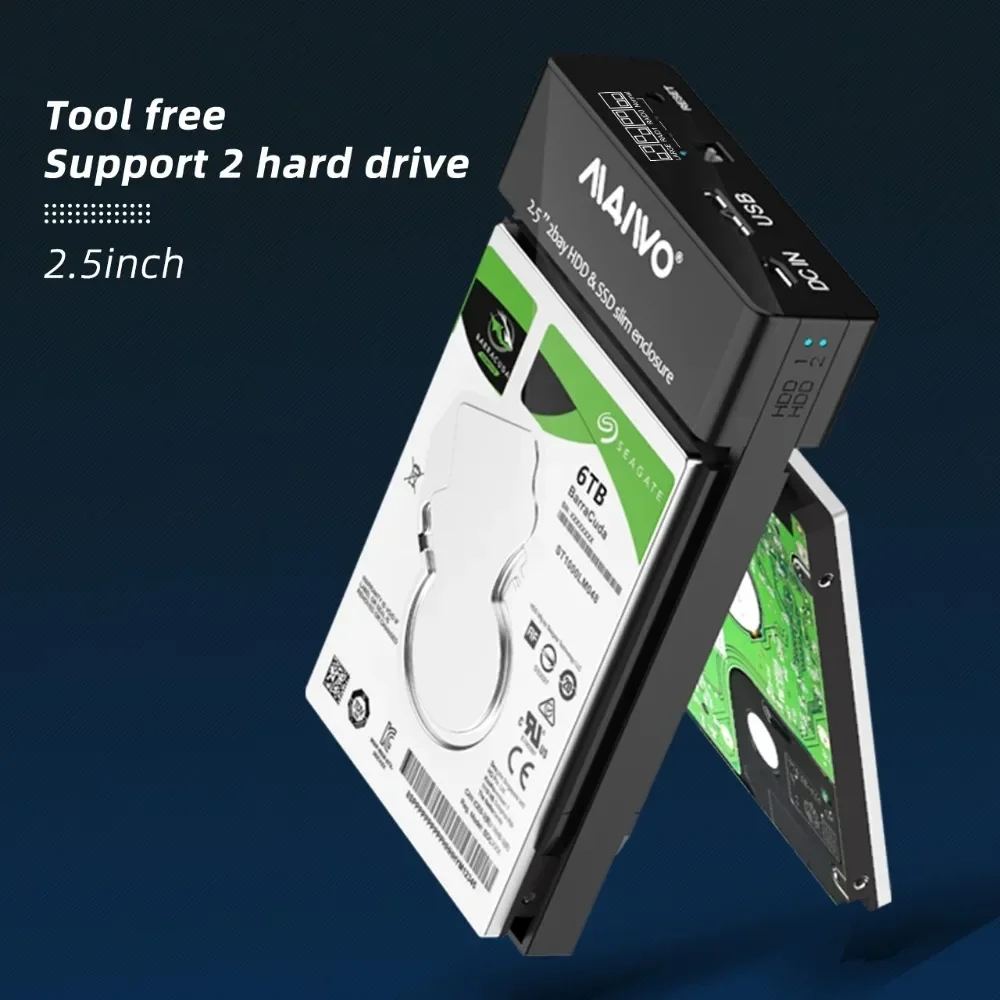 Supports simultaneous reading and writing of two 6TB 2.5-inch SATA hard drives, with a maximum capacity expansion of 12TB.