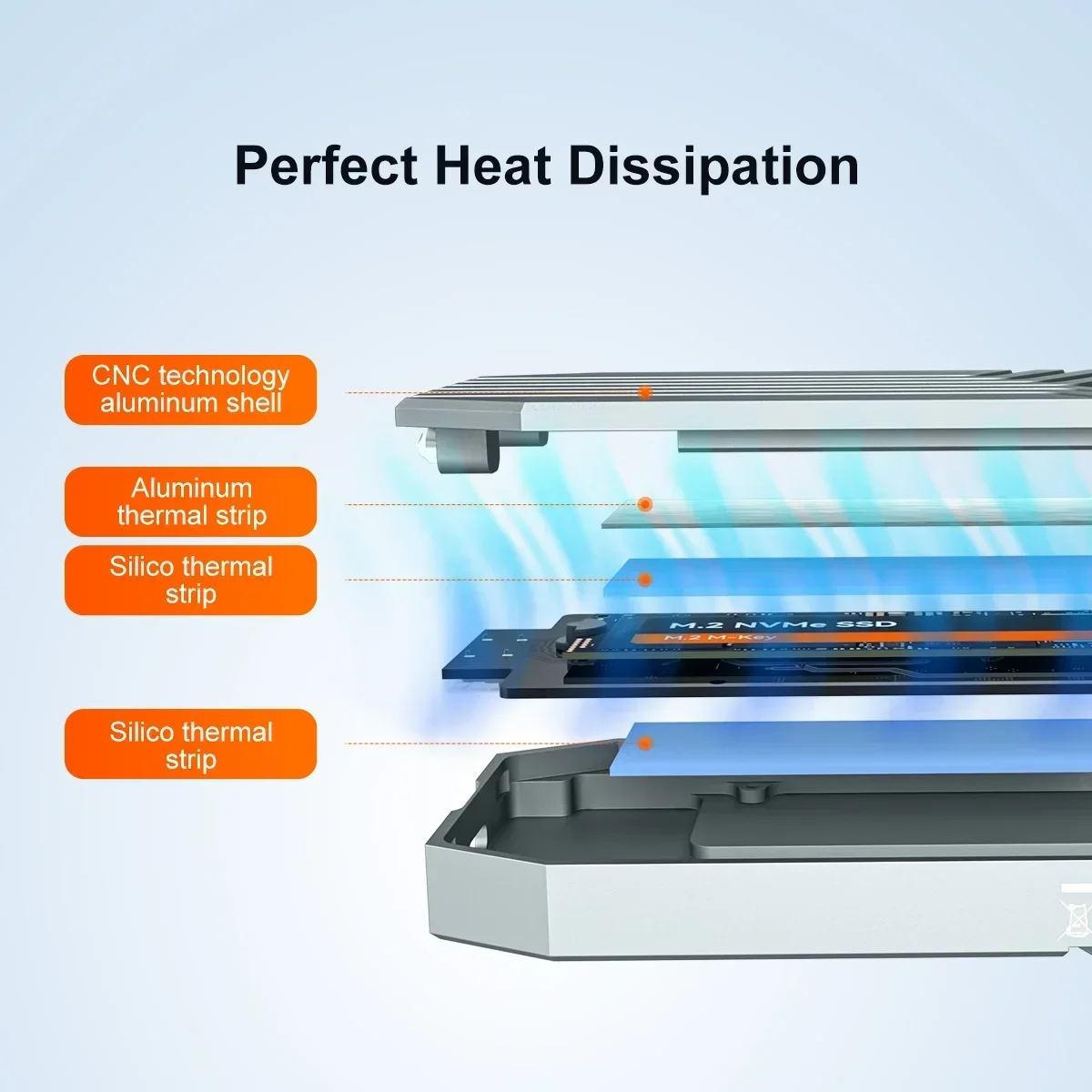Acerca de este artículo【Transferencia de datos de ultra alta velocidad】 Experimente una transferencia de datos ultrarrápida con la carcasa M.2 que admite interfaz USB 4.0 tipo C, que proporciona una velocidad de transferencia de datos de 40 Gbps.Esta carcasa SSD M.2 NVME puede ofrecer una expansión de hasta 8 TB de capacidad de almacenamiento.【Disipación de calor cuádruple exclusiva】Este M.2 NVMe SSD Enclosure utiliza una carcasa totalmente de aleación de aluminio, equipada con pegatinas de silicona duales que disipan el calor y escamas de aluminio que disipan el calor para disipar el calor, lo que garantiza que su gabinete SSD pueda disipar el calor fácilmente mientras trabaja.【Alta compatibilidad】Este ssd Thunderbolt 4 admite SSD M Key y B+M Key 2280 M.2 NVMe y es compatible con Thunderbolt 3/4.La interfaz USB4.0 también es compatible con versiones anteriores de USB3.2/3.1/3.0/2.0, lo que brinda compatibilidad universal para una amplia gama de opciones de almacenamiento.Compatible con Windows 8/10/11, Mac y Linux, y admite expansión de un solo disco.【Plug and Play】Esta carcasa Thunderbolt nvme adopta tecnología de moldeo integrada con hebilla de bola de presión y se puede utilizar sin una instalación complicada de herramientas.Viene con un mosquetón y una correa de almacenamiento trenzada, lo que lo hace más cómodo de usar y almacenar.【No necesita controlador de instalación】 La carcasa NVMe diseñada para ser pequeña y portátil, lo que la hace conveniente para su uso mientras viaja. Con un proceso de instalación conveniente, puede cambiar fácilmente el SSD si es necesario.