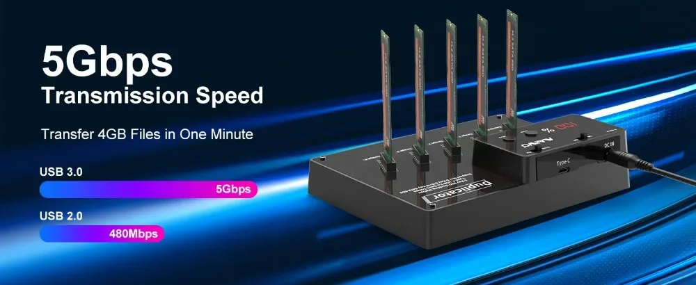 【Clonación sin conexión】Lea y escriba simultáneamente 5 SSD M.2.Admite clonación sin conexión de una tecla.Admite copia al por mayor 1-a-4.【NOTA: Si su unidad es nueva, realice inicialización, partición y formato del disco duro para que la carcasa funcione.Para pasos específicos, consulte la descripción.】