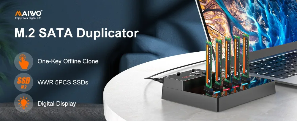 【Velocidad de transferencia de 6 Gbps】El duplicador SSD MAIWO M.2 está equipado con una interfaz de salida USB 3.0, la velocidad de transmisión más rápida puede alcanzar 6 Gbps y admite UASP cuando lo usa con el sistema operativo Windows 8.1 o superior.