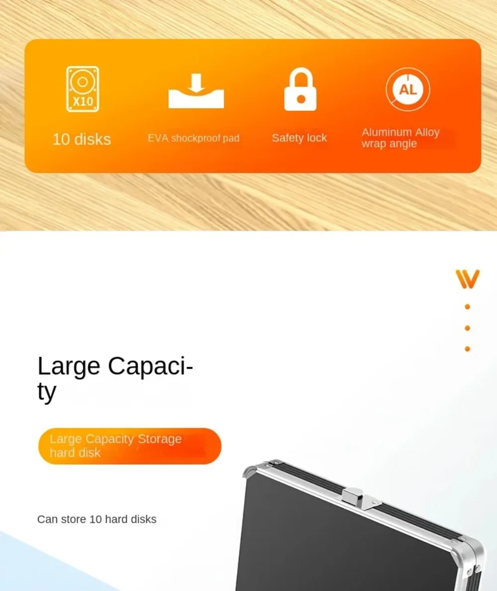 Comprar MAIWO-caja de almacenamiento de protección externa para disco duro HDD de 10 bahías, 2,5/3,5 pulgadas, portátil, Multi Bay, resistente al agua, polvo, a prueba de golpes, SSD