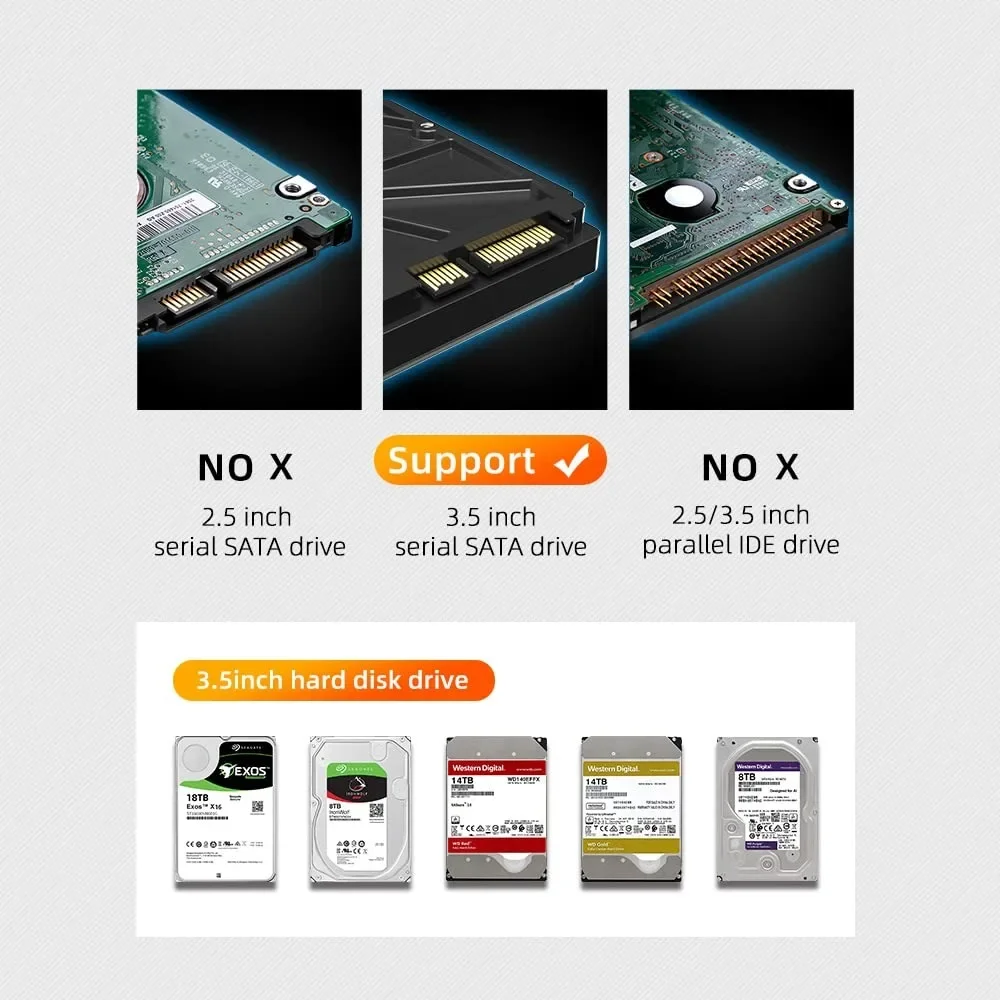 Admite conexión en caliente, plug and play, monitoreo de indicadores LED, puede monitorear el estado de funcionamiento de su disco duro en cualquier momento.
