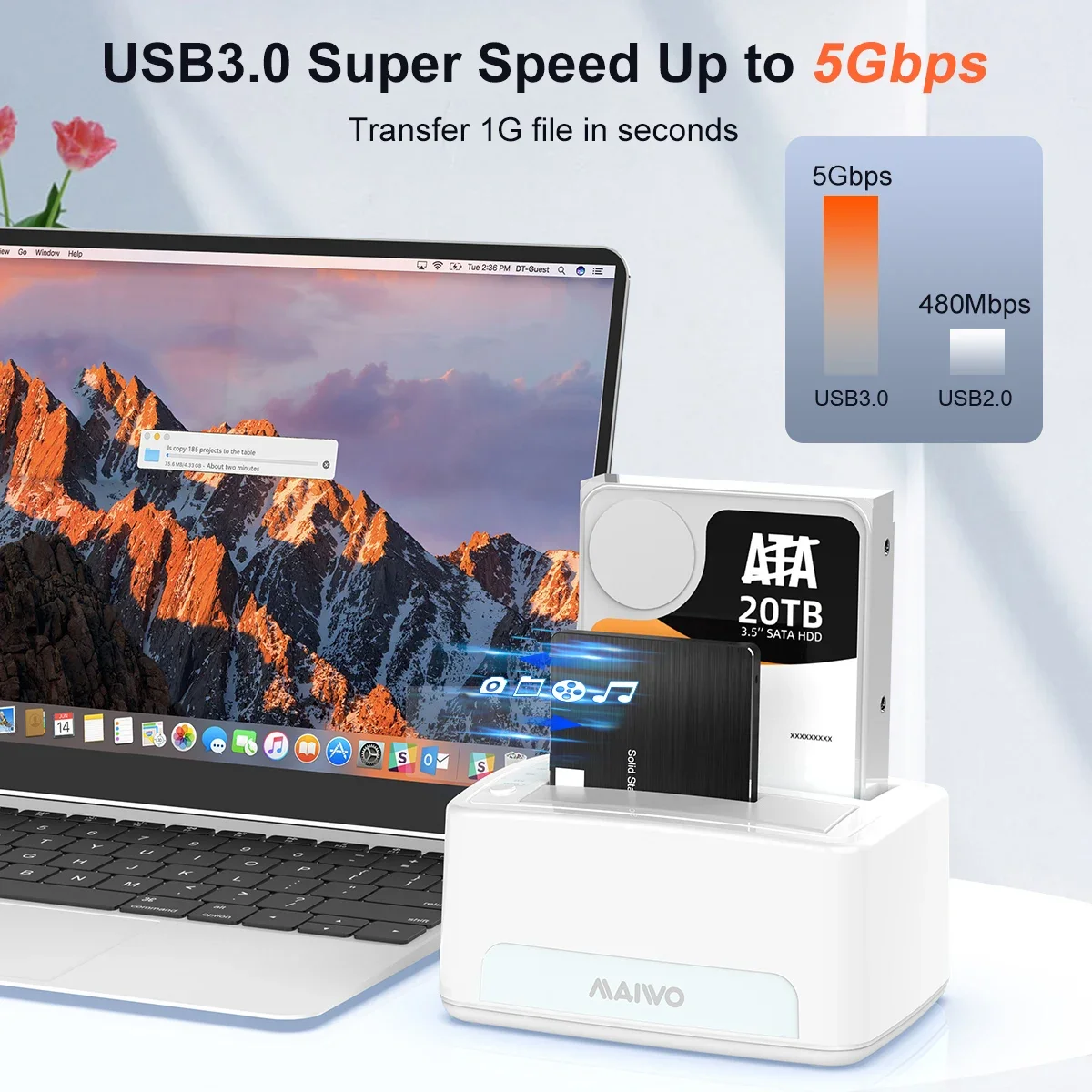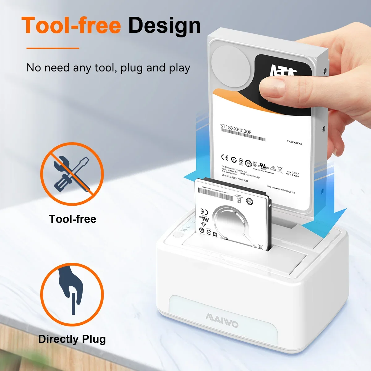 Comprar MAIWO-caja de estación de acoplamiento para disco duro SATA, 2,5 ", 3,5", clon sin conexión de 2 bahías para HDD SSD de 2,5/3,5 pulgadas, disco HD House Box PC