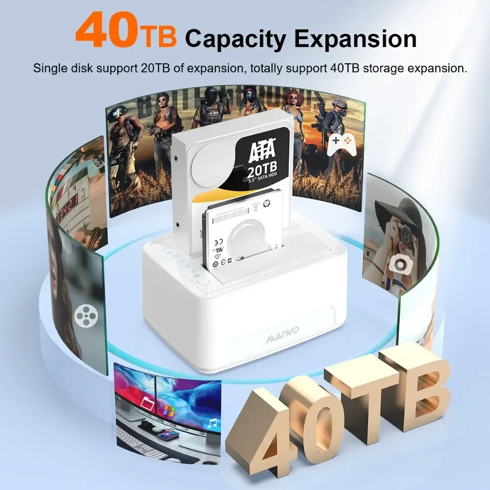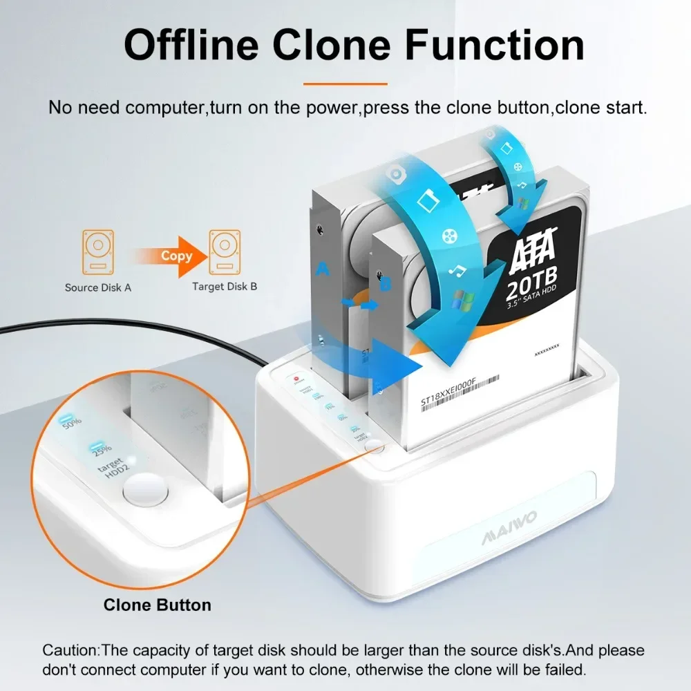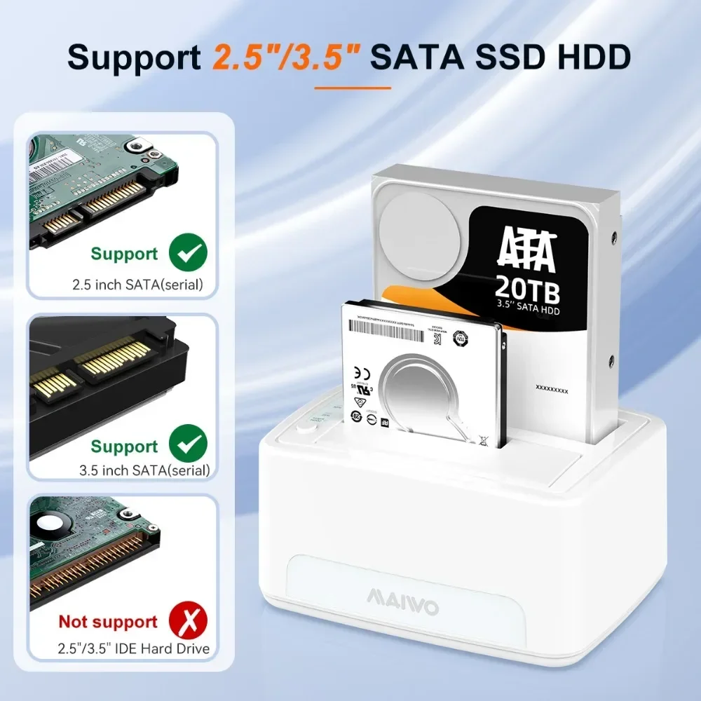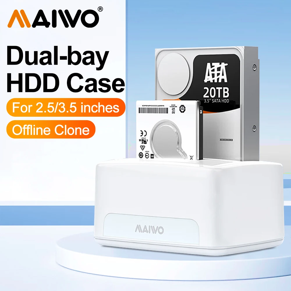 Comprar MAIWO-caja de estación de acoplamiento para disco duro SATA, 2,5 ", 3,5", clon sin conexión de 2 bahías para HDD SSD de 2,5/3,5 pulgadas, disco HD House Box PC