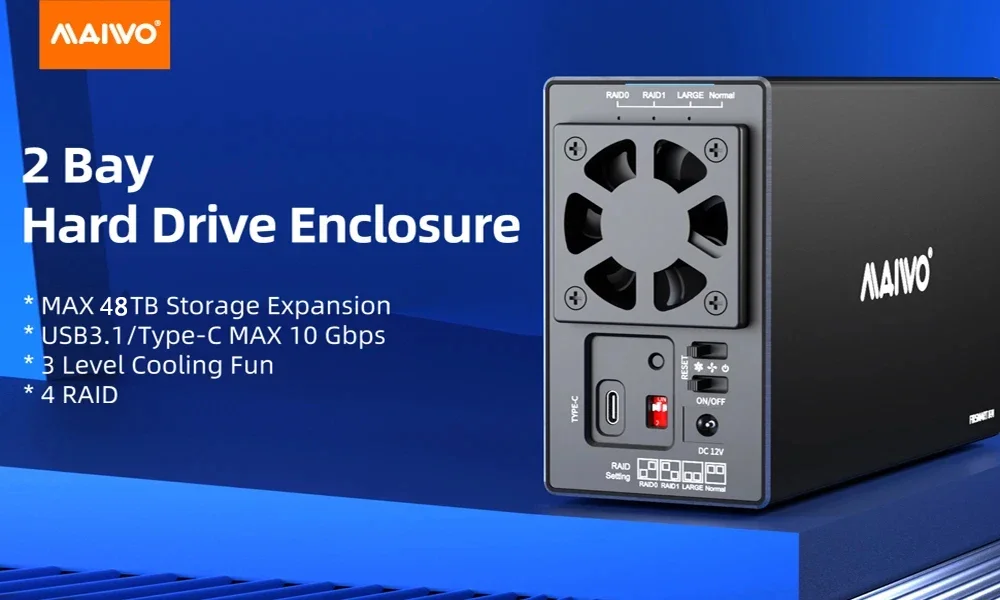 【Gran capacidad de 48 TB】El gabinete de almacenamiento de disco duro externo tiene 2 ranuras para unidades, cada ranura admite HDD SATA de 24 TB y 3,5 pulgadas, 48 TB de capacidad en total.