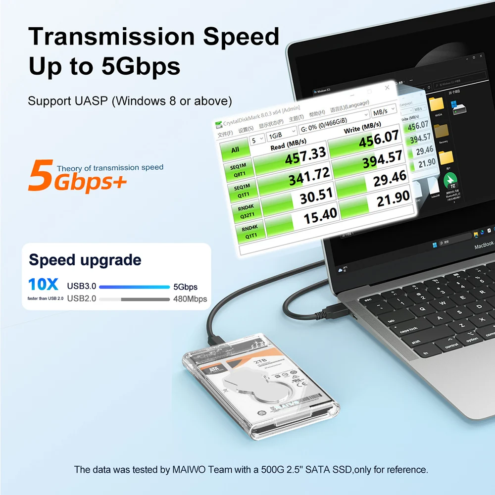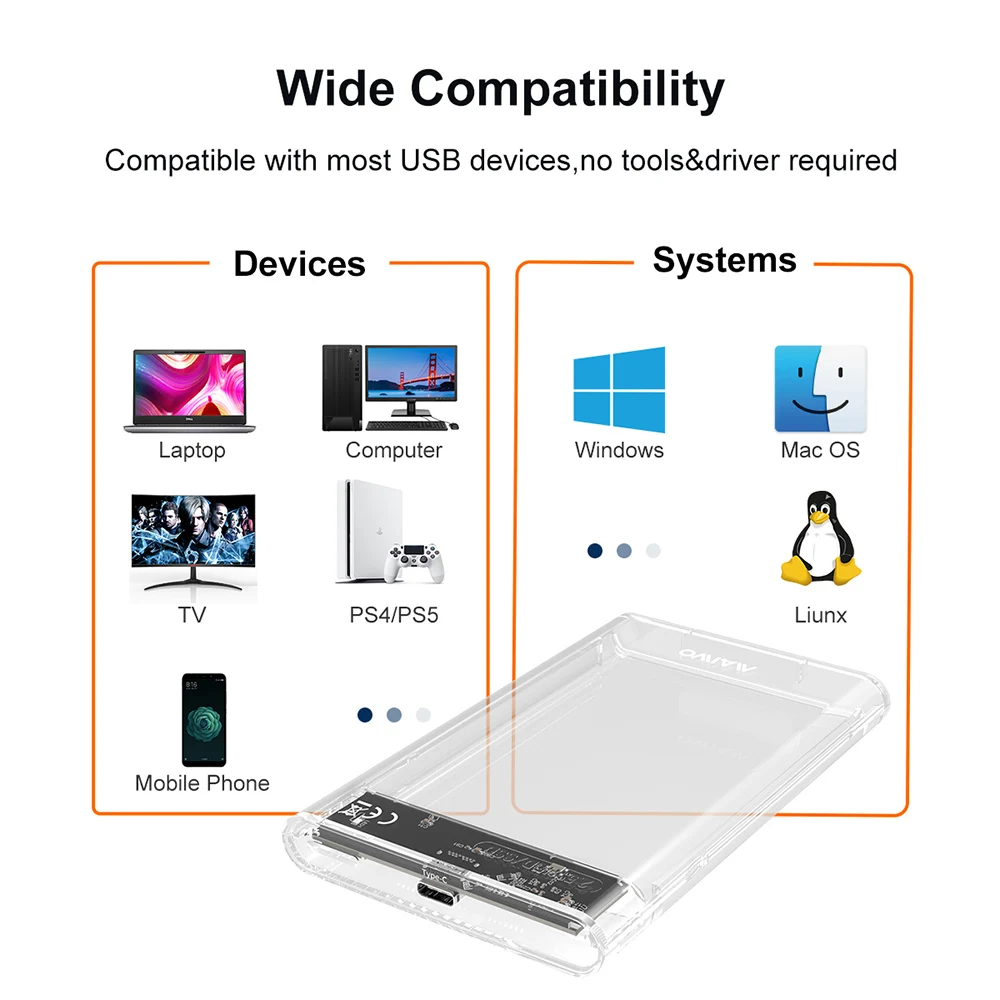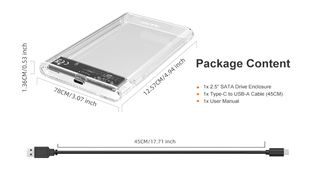 Comprar MAIWO-carcasa de disco duro externo, carcasa de 2,5 pulgadas, USB tipo C, SATA 5gbps, para SSD HDD 9,5, 7mm, compatible con TF UASP