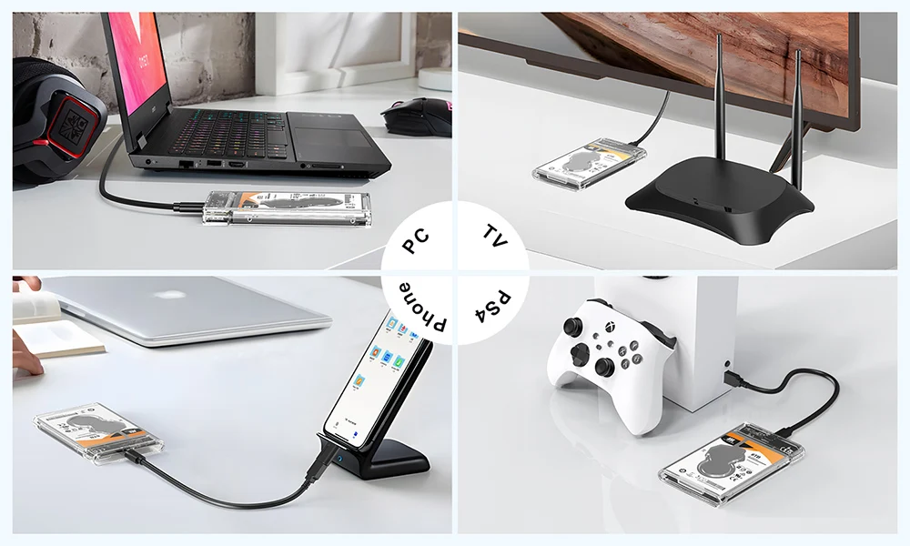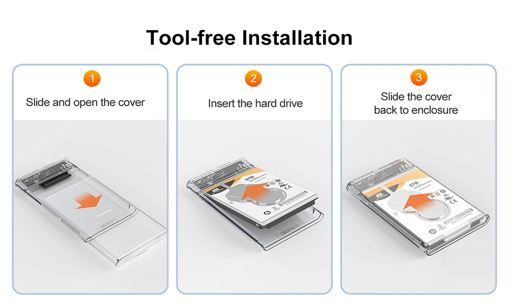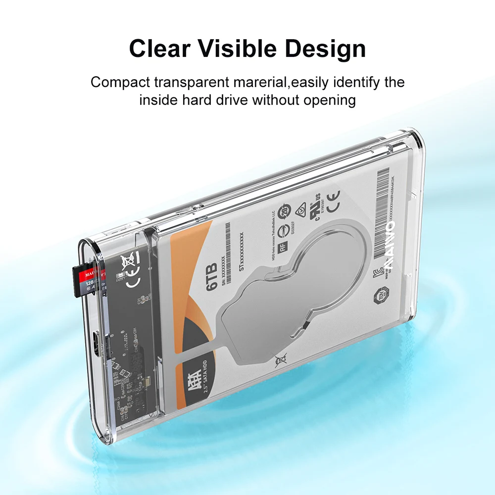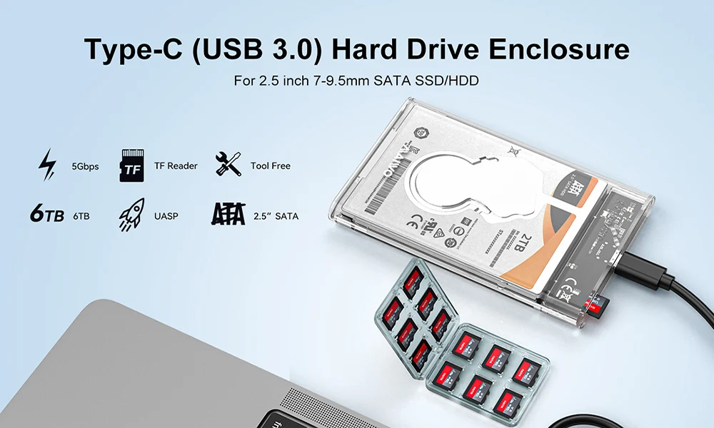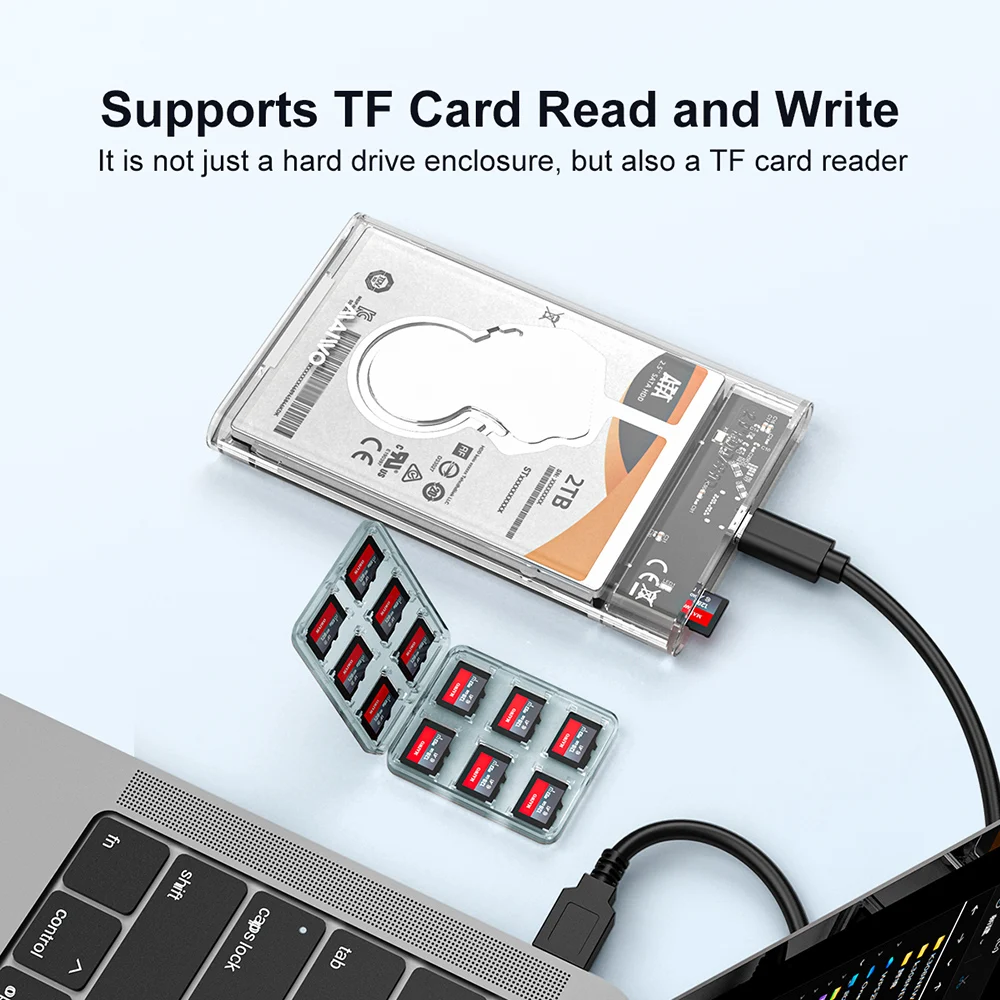 Caja de unidad de estado sólido portátil transparente HDD/SSD de 2,5 pulgadas tipo C a USB3.0 caja de disco duro externo para tableta portátil, con función de lectura de tarjeta TF