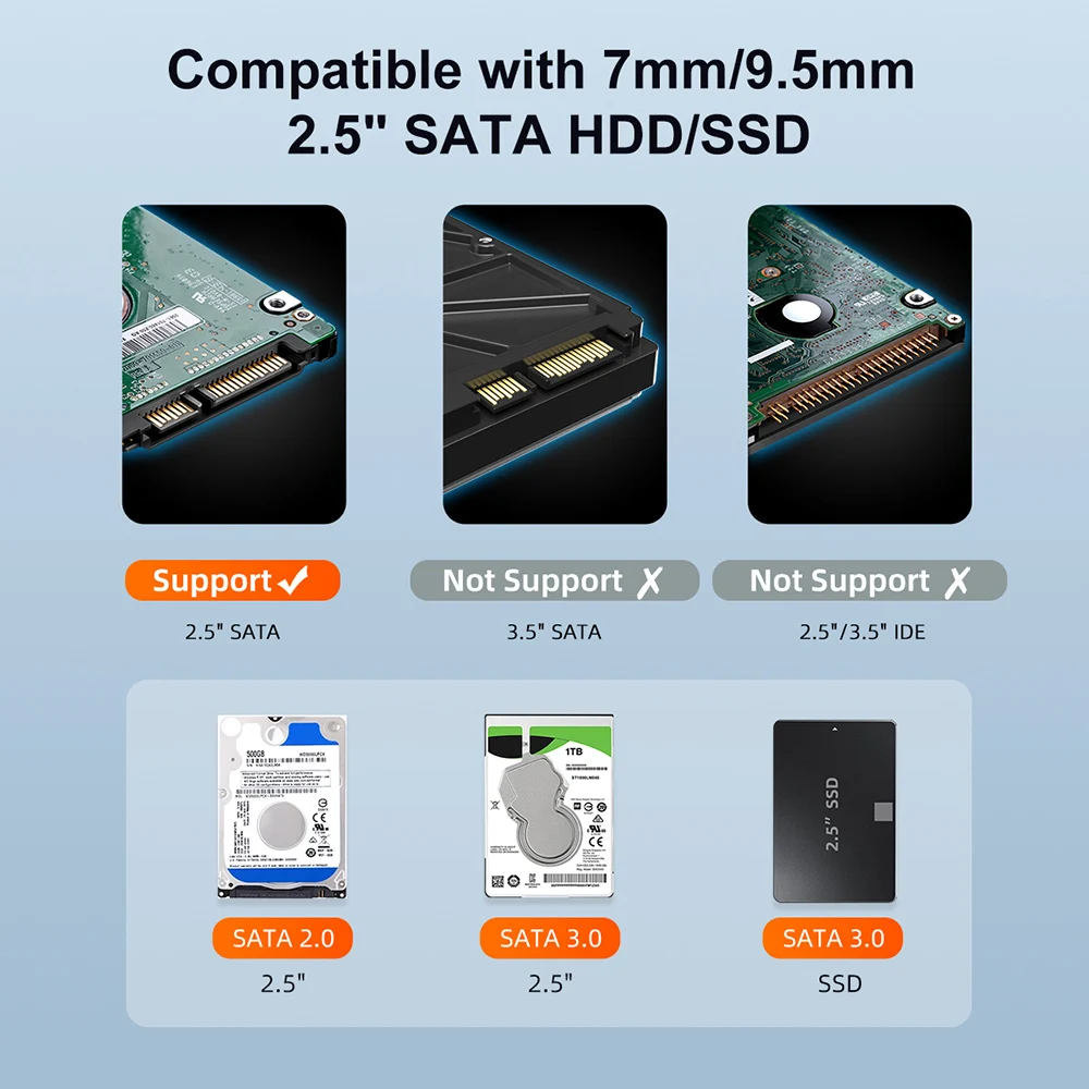 Disco duro compatible. Disco duro mecánico/de estado sólido con interfaz SATA de 2,5 pulgadas con un grosor de menos de 9,5mm