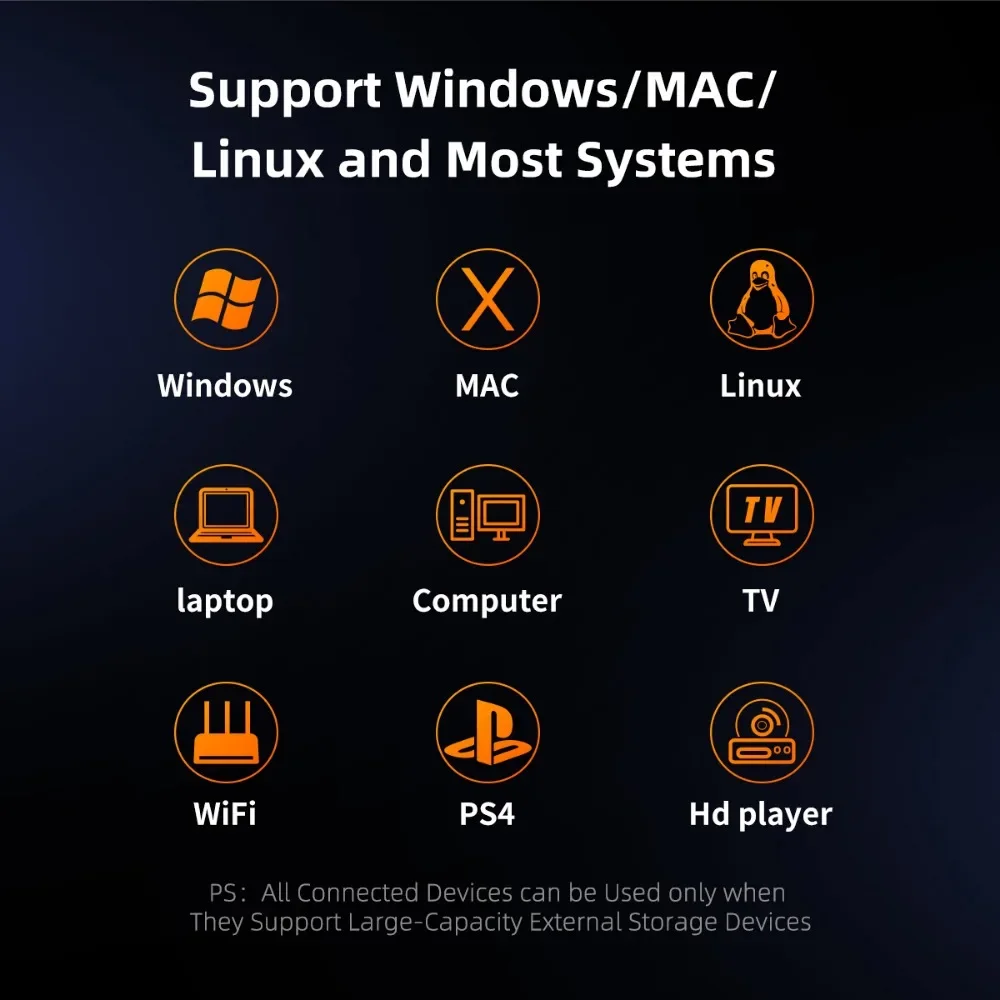 【PLUG and PLAY Compatible con los sistemas convencionales 】: La carcasa del disco duro externo es compatible con Windows XP/ VISTA/ Windows 7/ 8/8,1/10/ Linux/ Mac 9,1/10,2 o superior. Admite Puerto HD para conectar el ordenador al televisor y admite salida de vídeo HD 4K.
