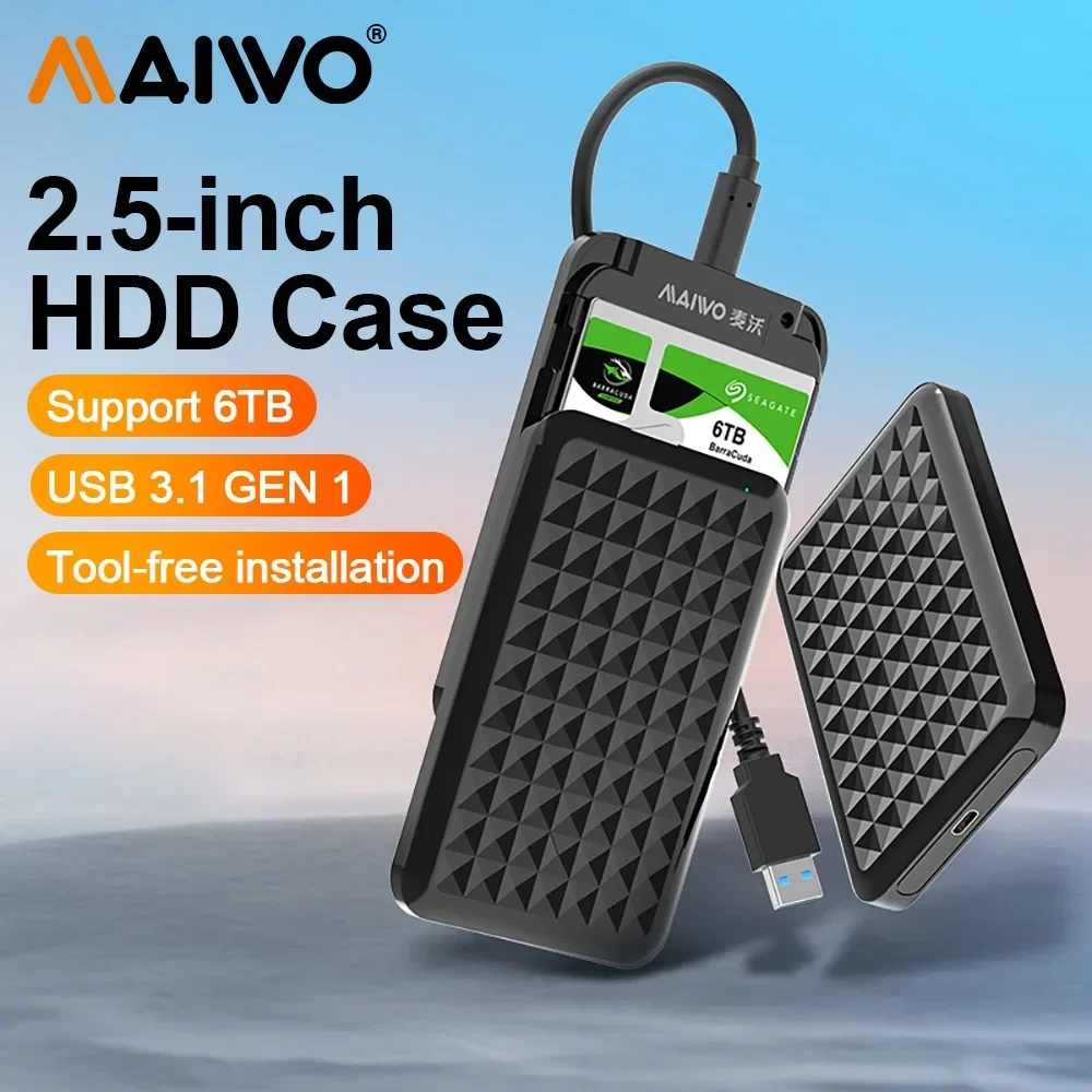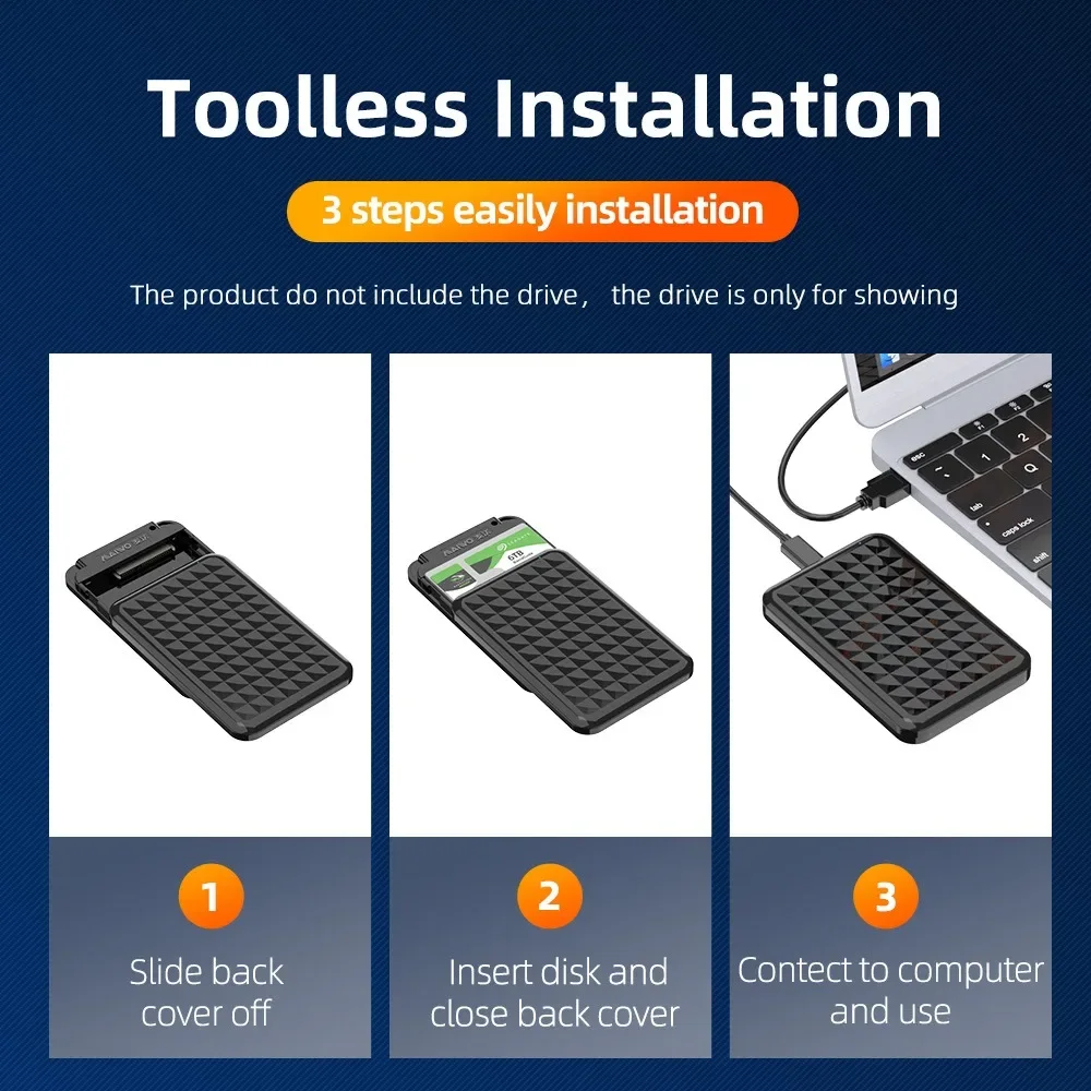 Caja transparente USB3.2 GEN1 tipo C sin herramientas para HDD/SSD SATA de 2,5"