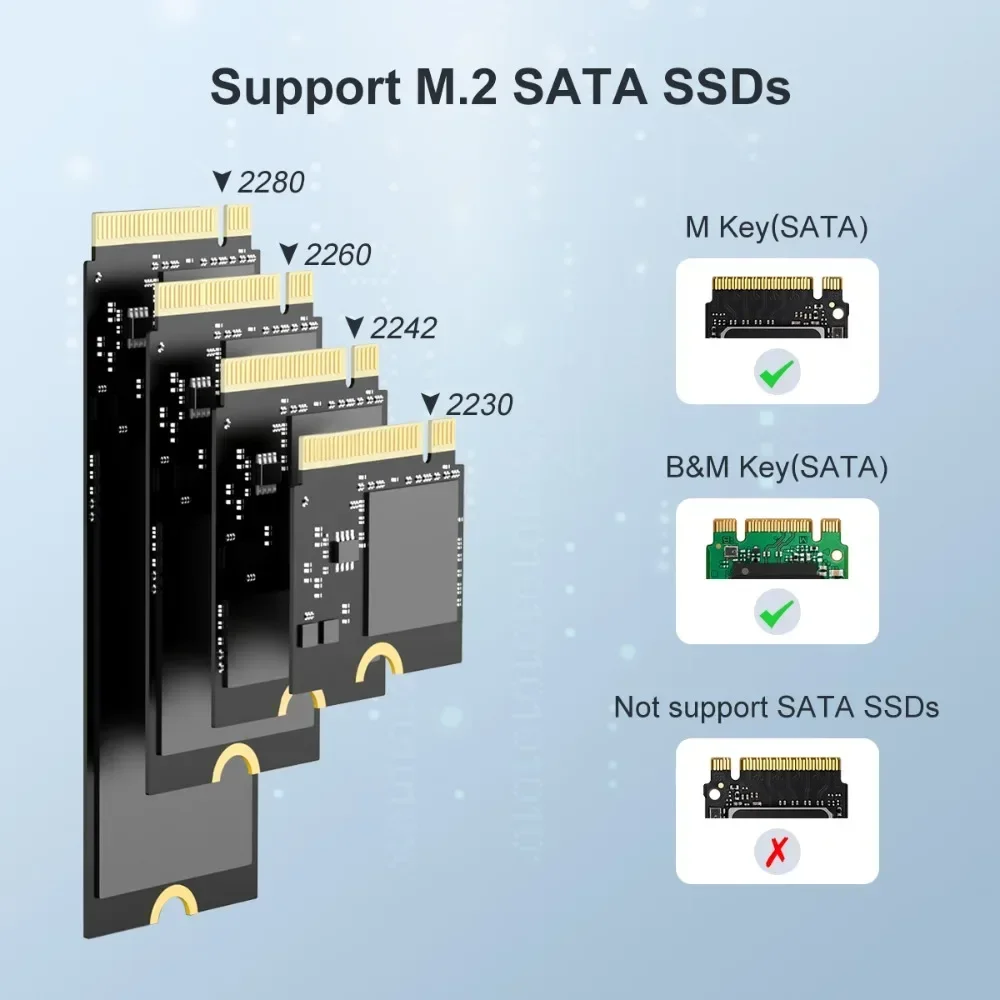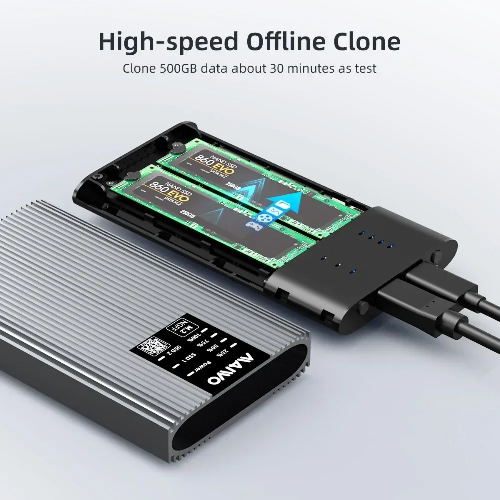 【CAJA PORTÁTIL DE protocolo dual】: Este duplicador externo M.2 para SSD SATA M.2 2242 2260 2280, admite 2 SSD SATA M.2 lee y escribe al mismo tiempo.