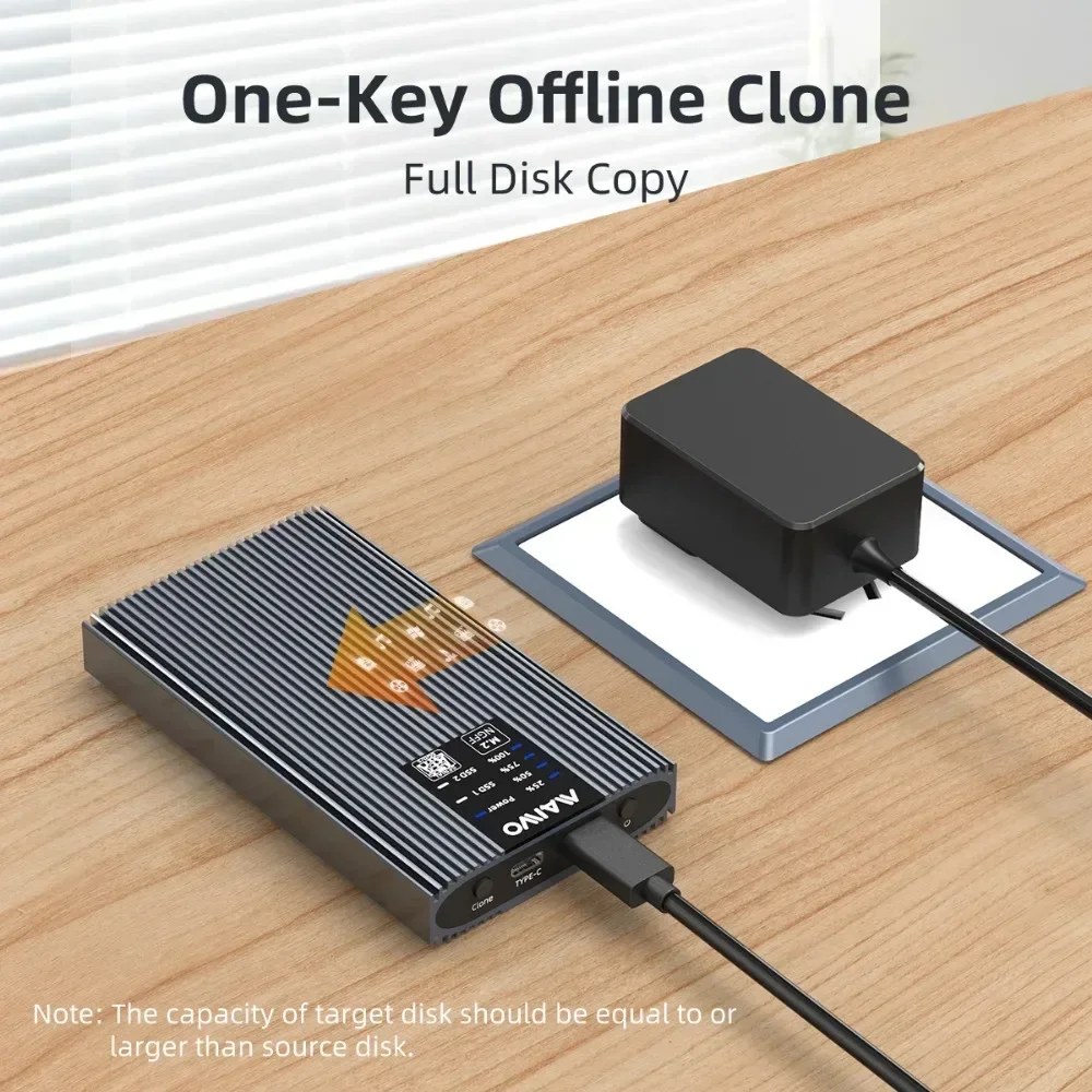 【Clonación sin conexión】: no es necesario conectarse a un PC, simplemente conéctese a la alimentación y haga clic en el botón 'Cloner' para hacer una copia de seguridad de sus datos importantes. Admite copia de disco del sistema de una tecla.