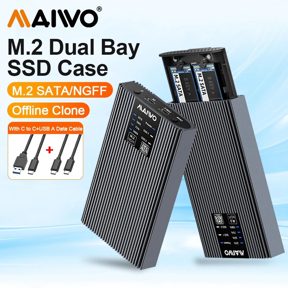 Comprar MAIWO-carcasa de SSD M.2 de doble bahía, carcasa de SSD M.2 NGFF SATA para clave B y B + M, compatible con clon sin conexión para PC y portátil